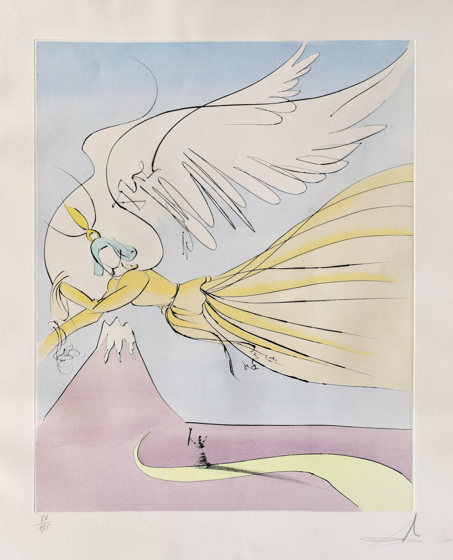 semnat dreapta jos, sub cadru, în creion, "Dali"; numerotat stânga jos, sub cadru, în creion, "87/175"