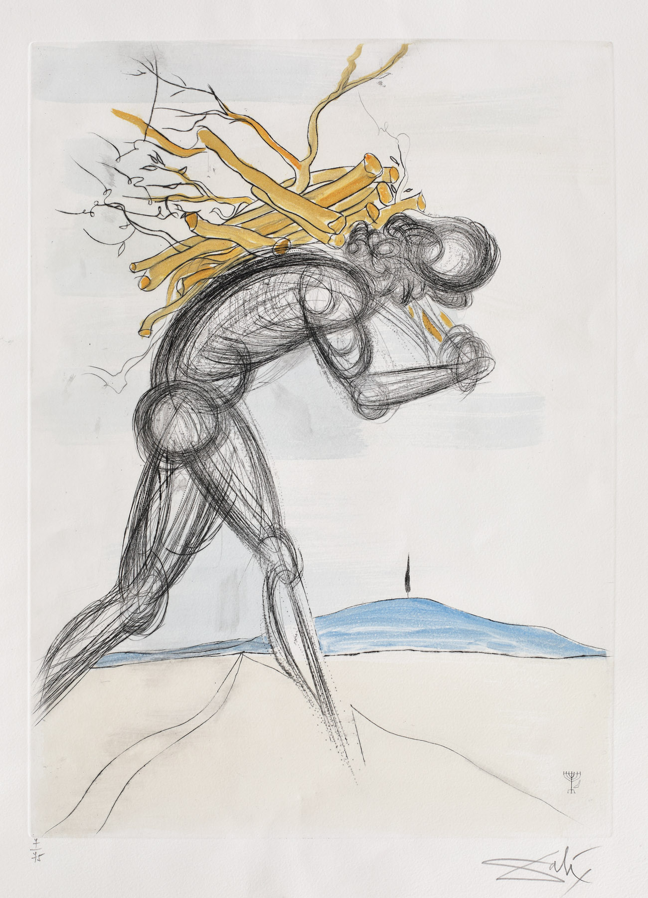 semnat dreapta jos, sub cadru, în creion, ”Dali”; numerotat stânga jos, sub cadru, în creion, ”7/75”