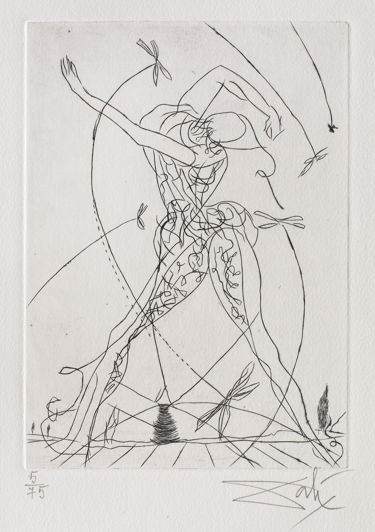 semnat dreapta jos, sub cadru, în creion, ”Dali”; numerotat stânga jos, sub cadru, în creion, ”5/75”
