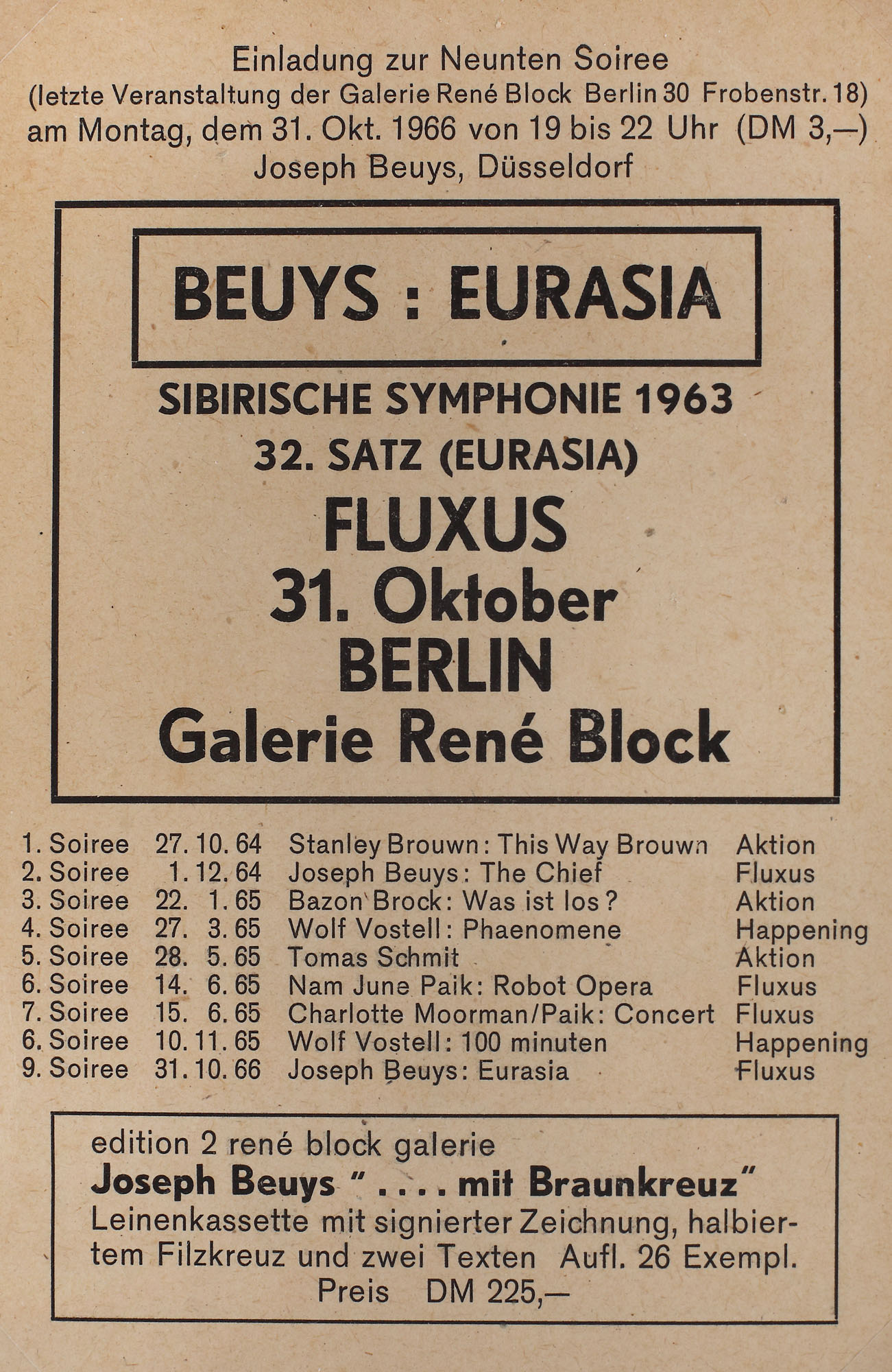 94. Invitație la expoziția Eurasia, a lui Joseph Beuys, de la galeria René Block, Berlin, 1966 [1966]