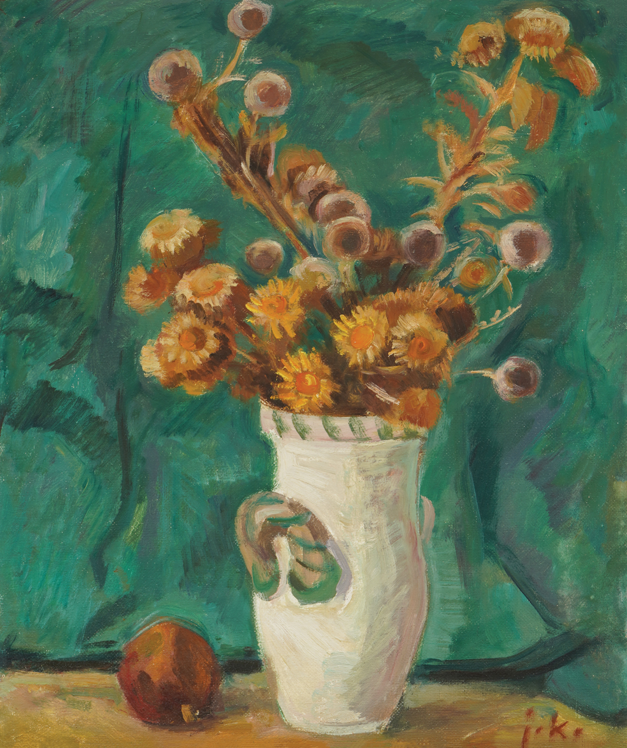 signirano dolje desno, crvenom, ''J.K.''
