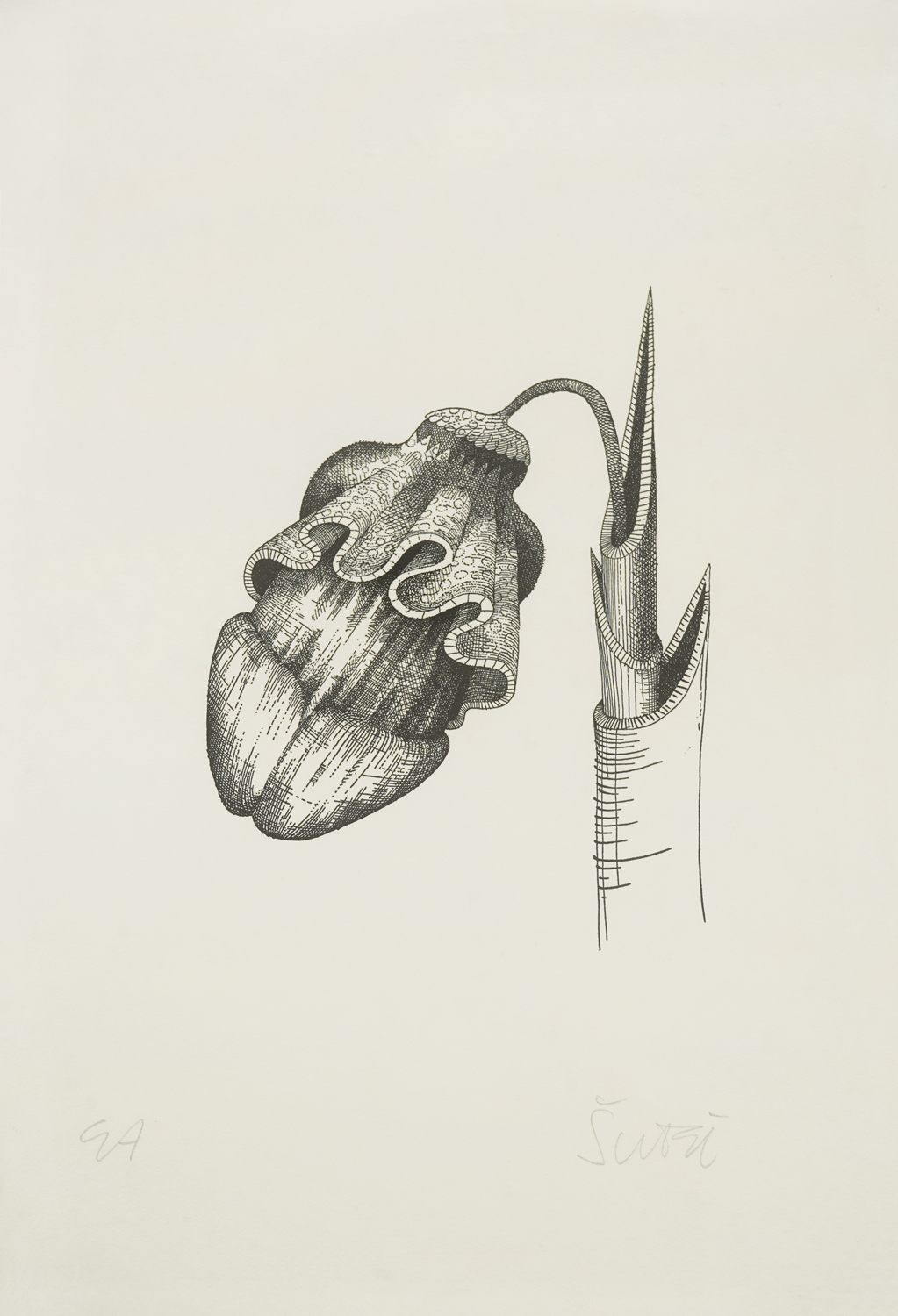 signirano dolje desno, olovkom, "Šutej"; notirano dolje lijevo, olovkom, "EA"
