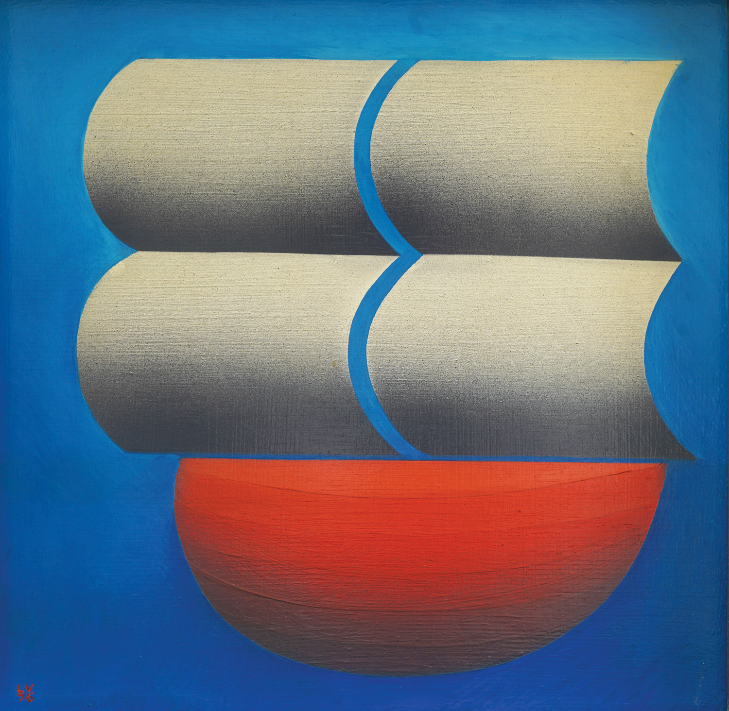 Vasko Lipovac (Kotor, 1931. – Split, 2006.) slikar je, kipar i grafičar. Na njegovo je likovno stvaralaštvo izuzetno utjecao obiteljski dom smješten na bokokotorskom zaljevu, usred bajkovitog okoliša. Studirao je na zagrebačkoj Akademiji primijenjenih umjetnosti te je polazio Majstorsku radionicu Krste Hegedušića. Od 1967. godine živio je u Splitu, gradu koji je ostavio traga na Vaskov opus koji se jednom riječju može opisati kao maštovit. Služio se različitim materijalima, bojama, oblicima, a u središtu je uvijek imao čovjeka. Stvarao je u kovini, kamenu, drvu, olovu, srebru, pleksiglasu, limu, vrlo često u živim bojama. Bio je usredotočen na sažimanje oblika te je jedno vrijeme bio pod utjecajem skupine Exat 51. U 1960-ima naglašava simetričnost kompozicija i koristi otvorenu, čistu boju. Izrađuje i kolaže, grafike, reljefe i skulpture. Krajem 1970-ih naglašava statičnost i voluminoznost likovima. Nakon toga intenzivnije se bavi sportskim temama istražujući ljudski pokret. Od 1980-ih bavi se i sakralnim temama. Jednostavnost, posebnost i vedrina Vaska Lipovca vidljiva je na ovom ulju na šperploči koje prikazuje mediteranski motiv – stilizirani brod. Forma je jednostavna, bogate boje – crvene i plave. Jedra u gornjem dijelu sliku donesena su u prepoznatljivom Lipovčevom stilu mekih, zaobljenih oblika. Trup broda prikazan je kao polukugla u crvenim svjetlijim i tamnijim tonovima što pridonosi dojmu trodimenzionalnosti. Plava pozadina podsjeća na spajanje mora i neba u jednu masu. MČ