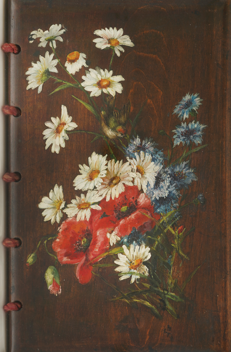 47. Wooden Cover with Painted Flowers and Grosbeak [cca. 1898.]