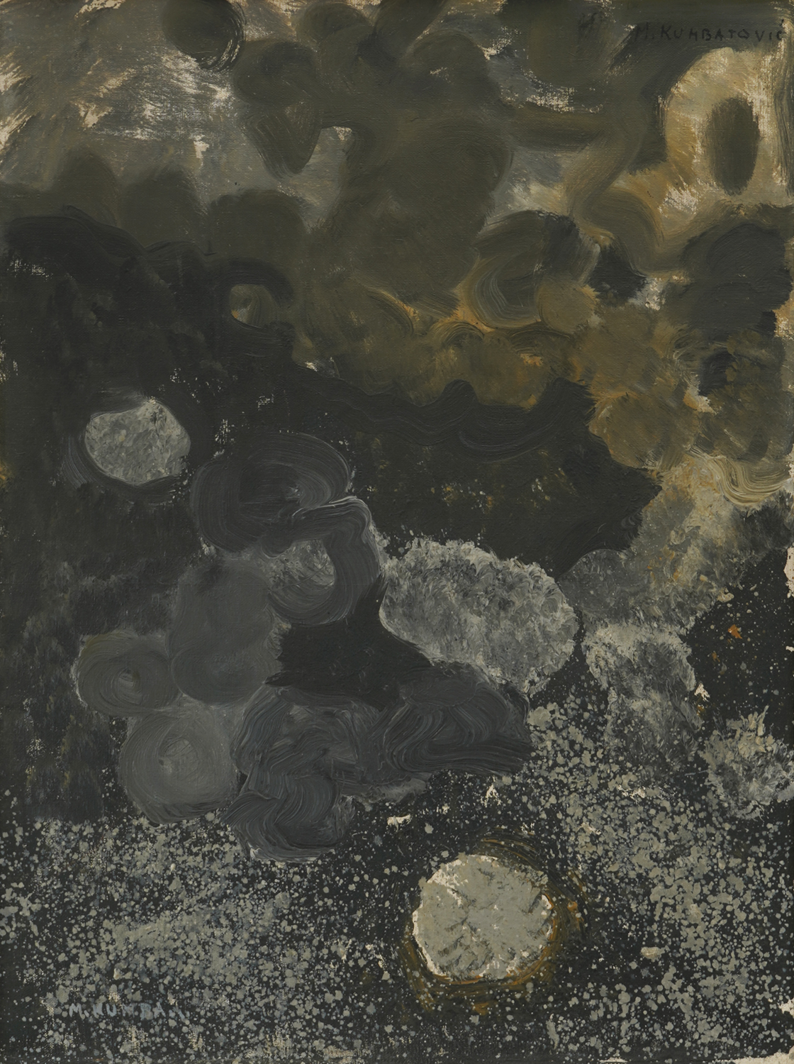 signirano gore desno, crnom, "M. KUMBATOVIĆ"