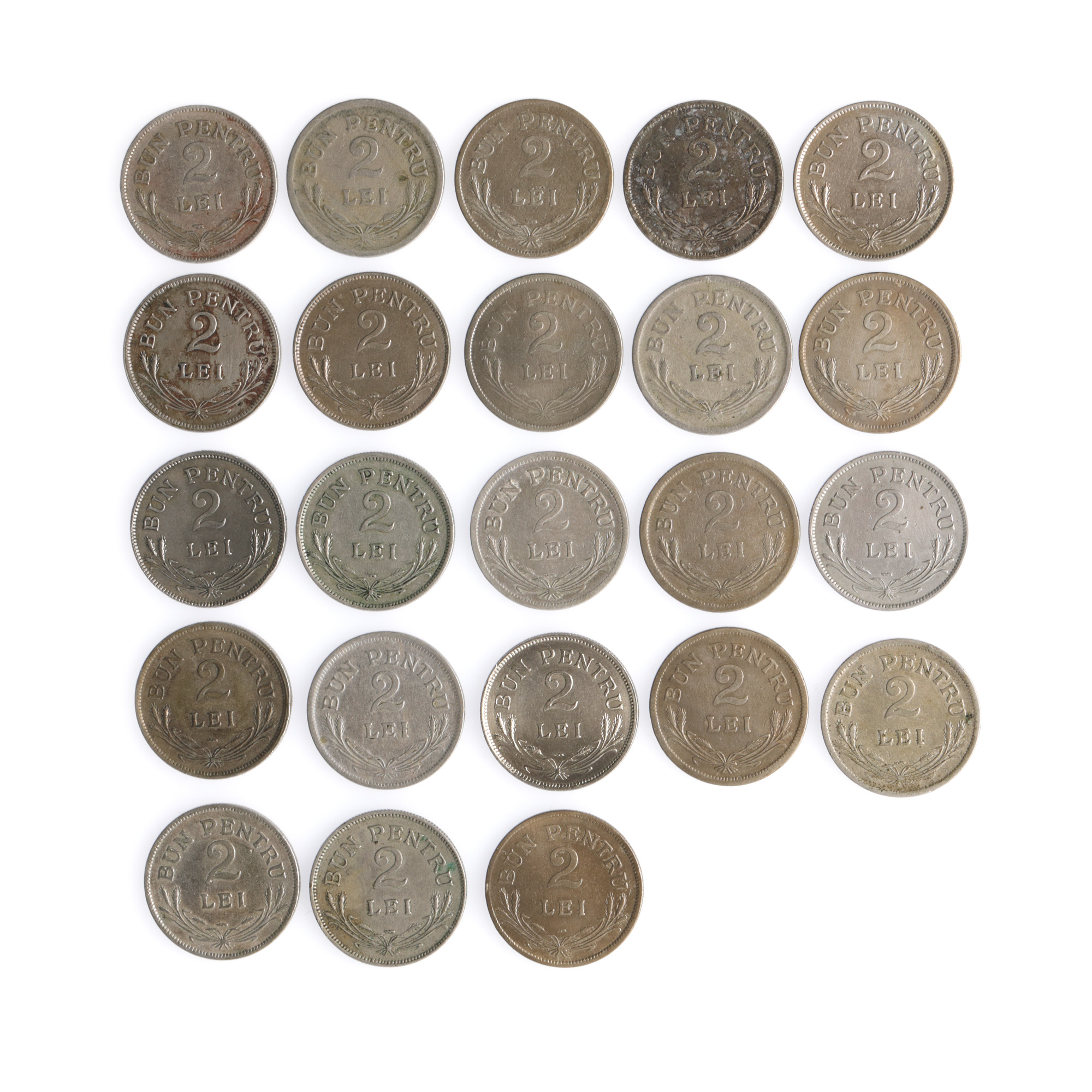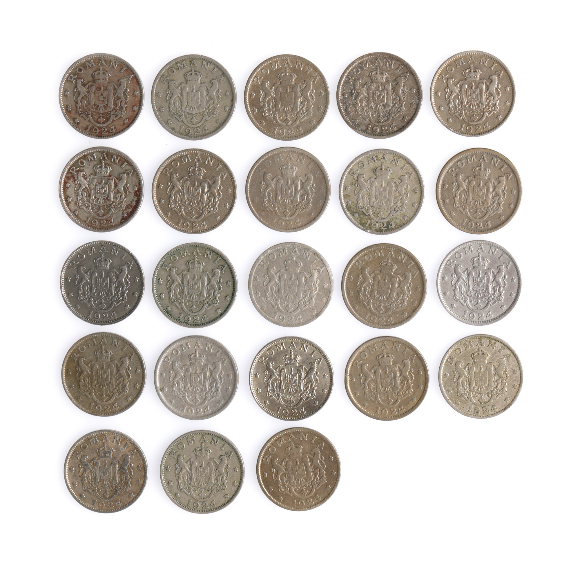 149. Lot format din 23 de monede de 2 lei 1924, monetăriile Poissy și Bruxelles