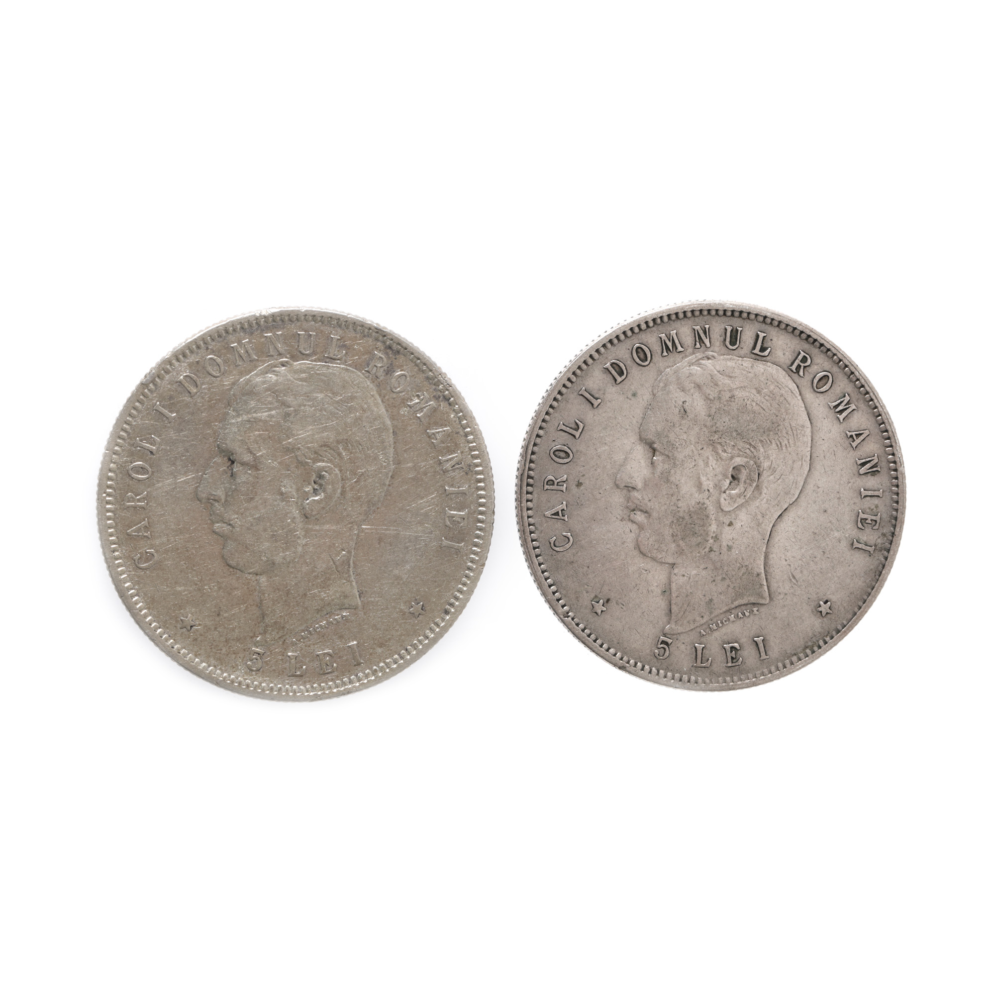158. Lot format din două monede de 5 Lei 1906, argint