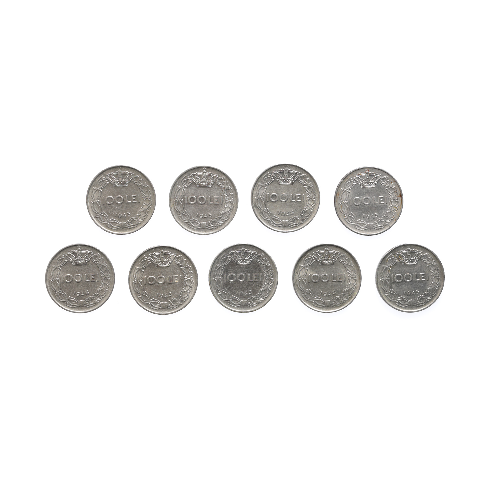161. Lot format din nouă monede de 100 Lei 1943