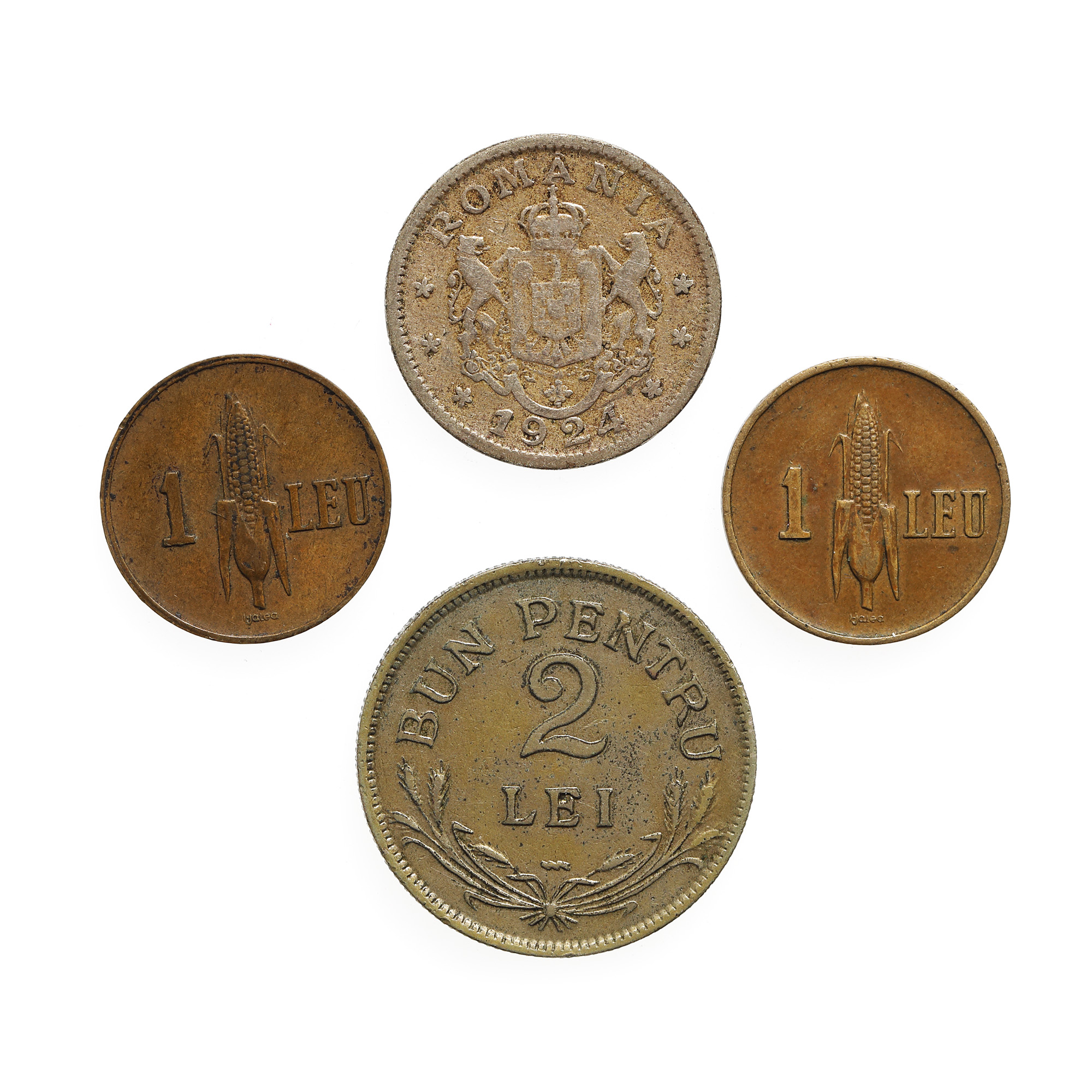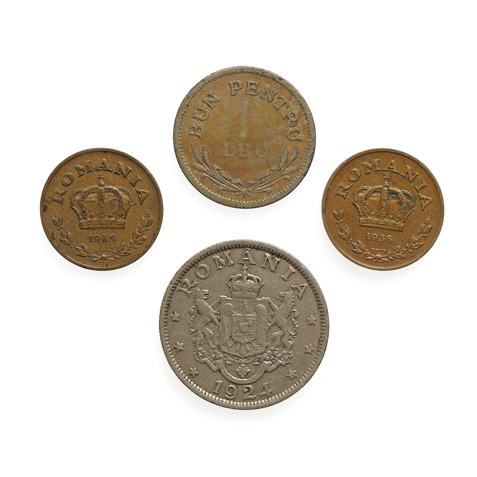 207. Lot format din patru monede, de 1 și 2 Lei, 1938 și 1924