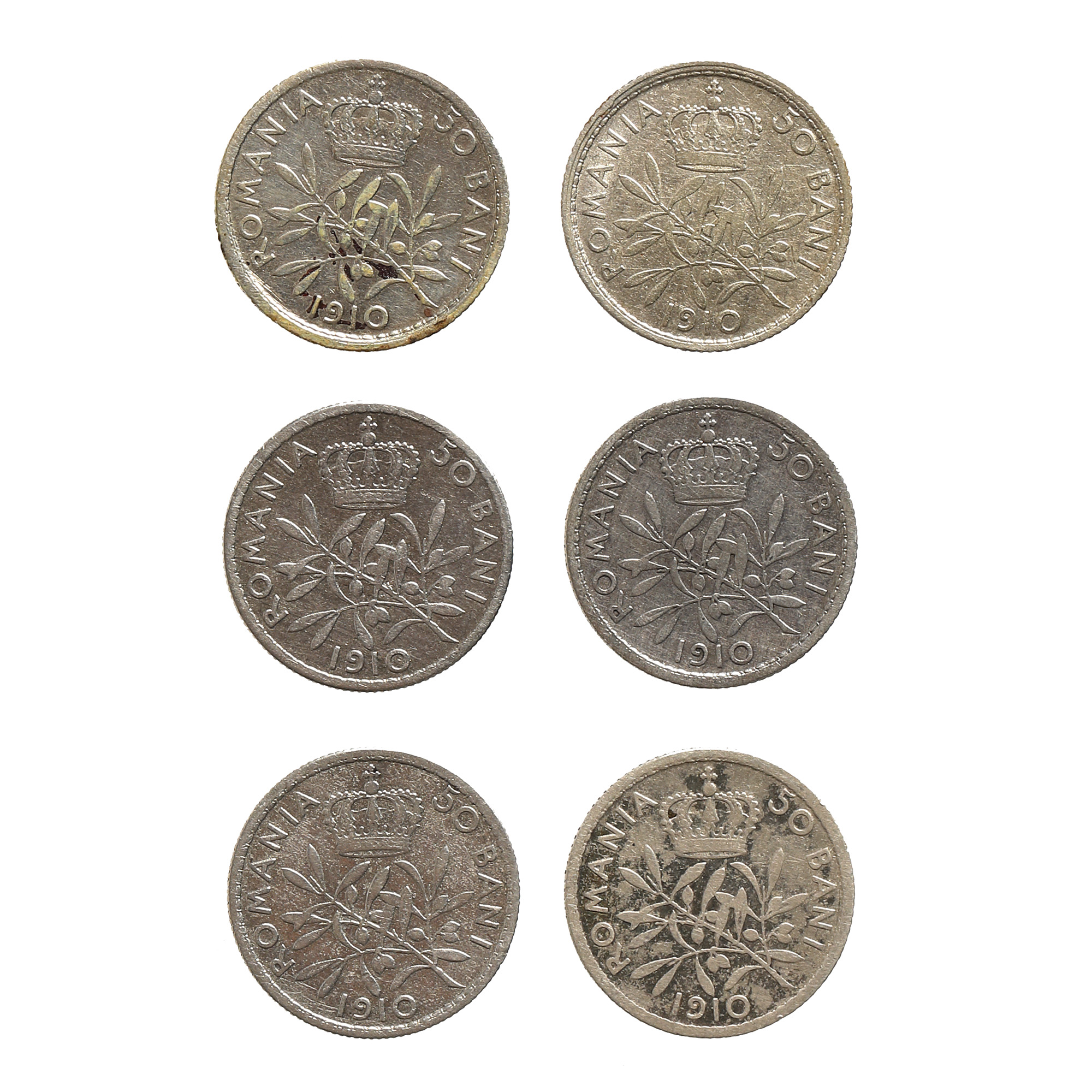 171. Lot format din șase monede de 50 Bani 1910, argint