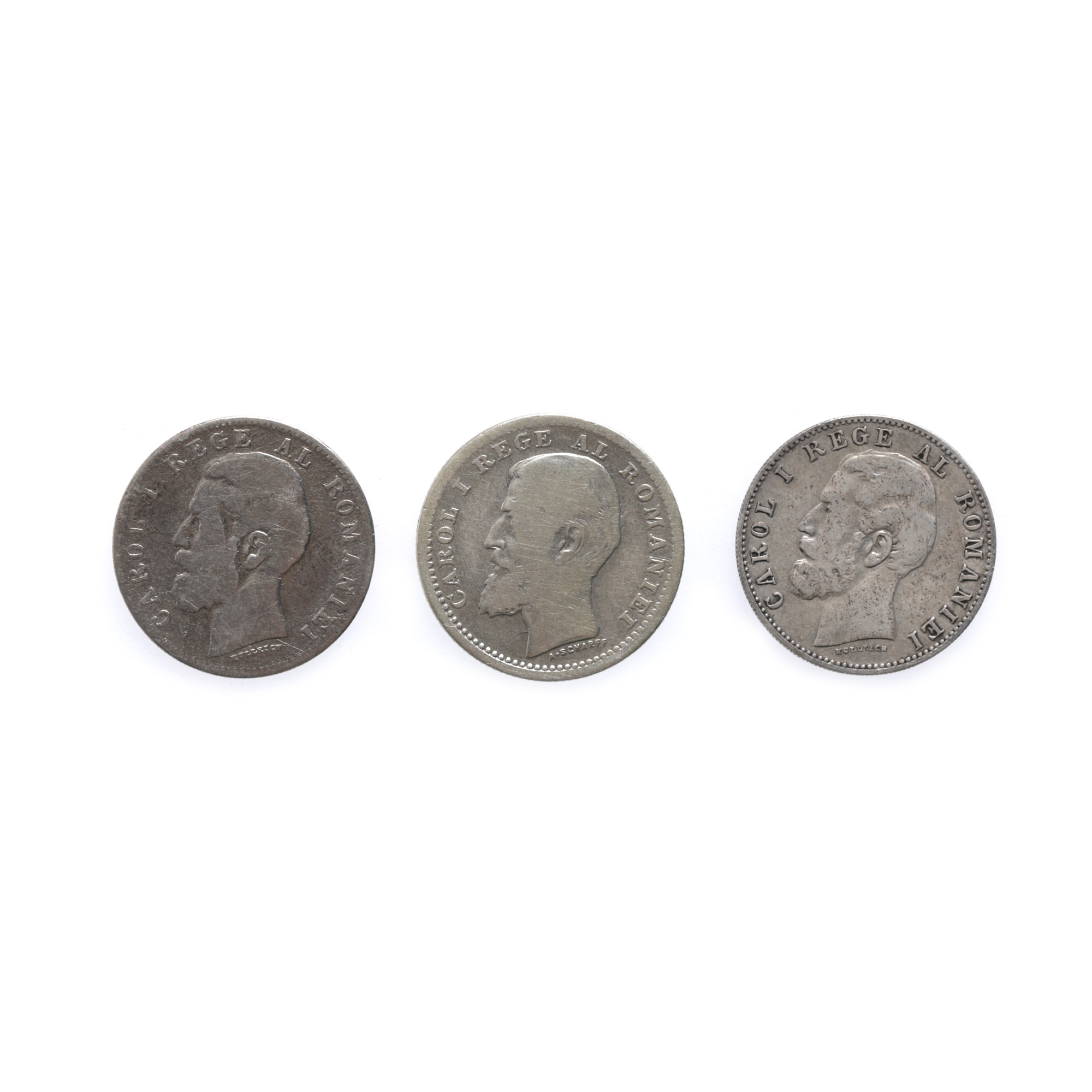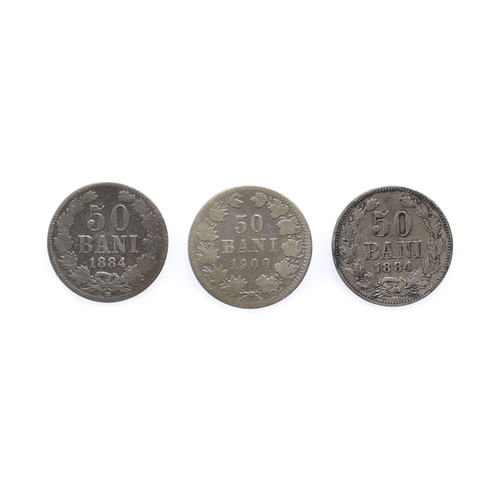 201. Lot format din trei monede de 50 Bani, 1884 și 1900, argint
