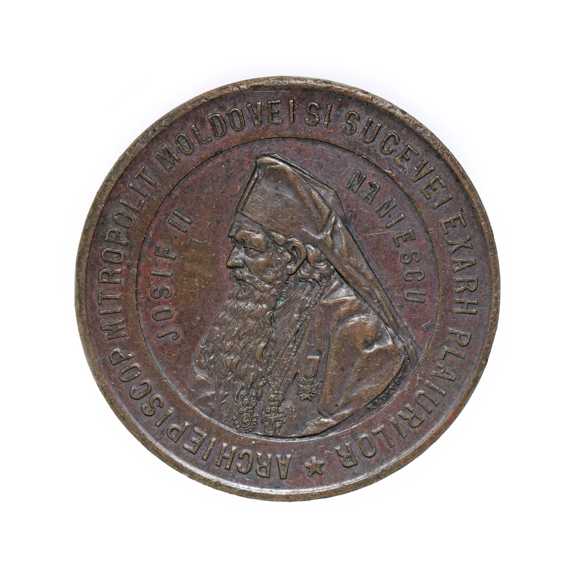 132. Medalia "Arhiepiscopul Mitropolit al Moldovei și Sucevei Exarh Plaiurilor Iosif II Naniescu", 1900, gravor Theodor Radivon