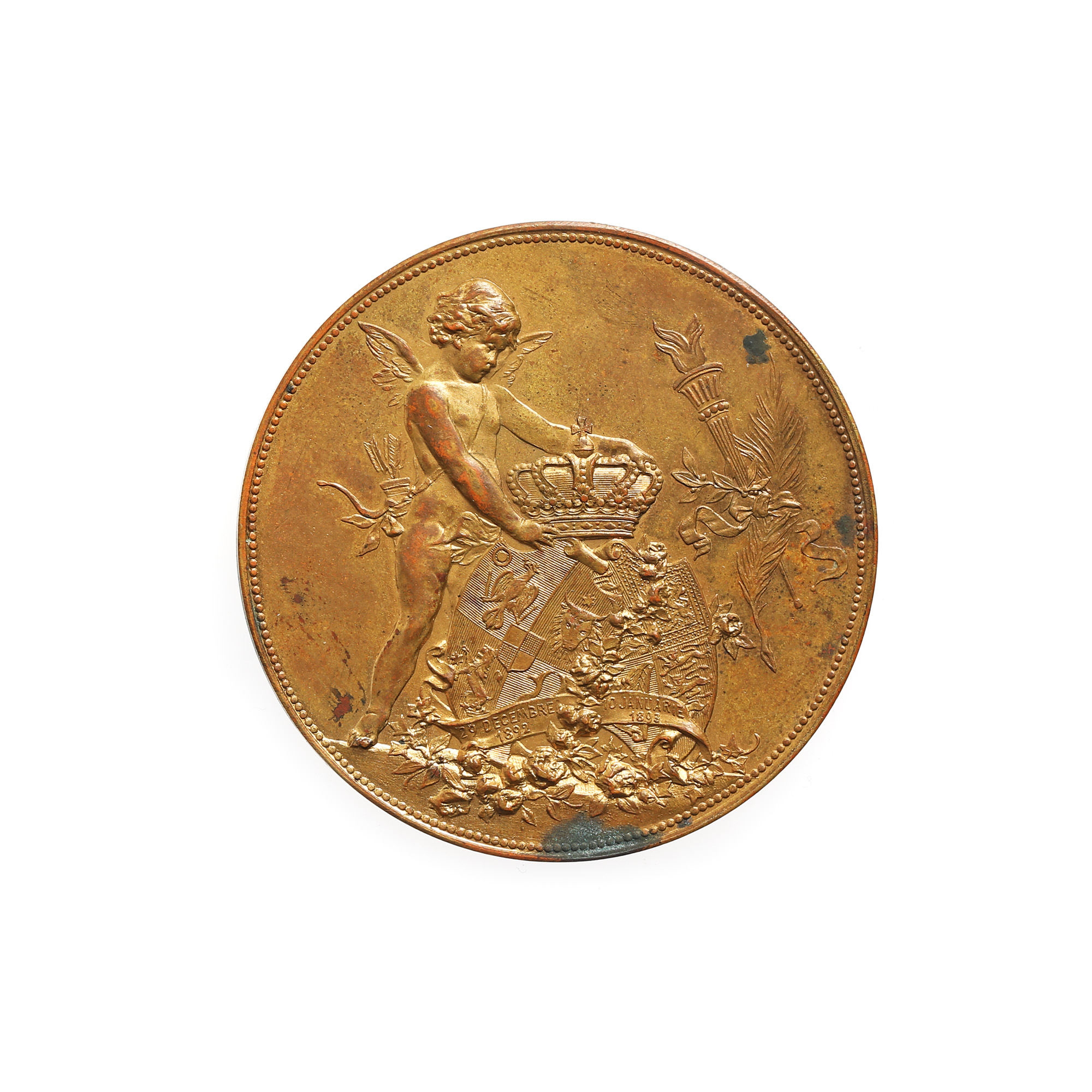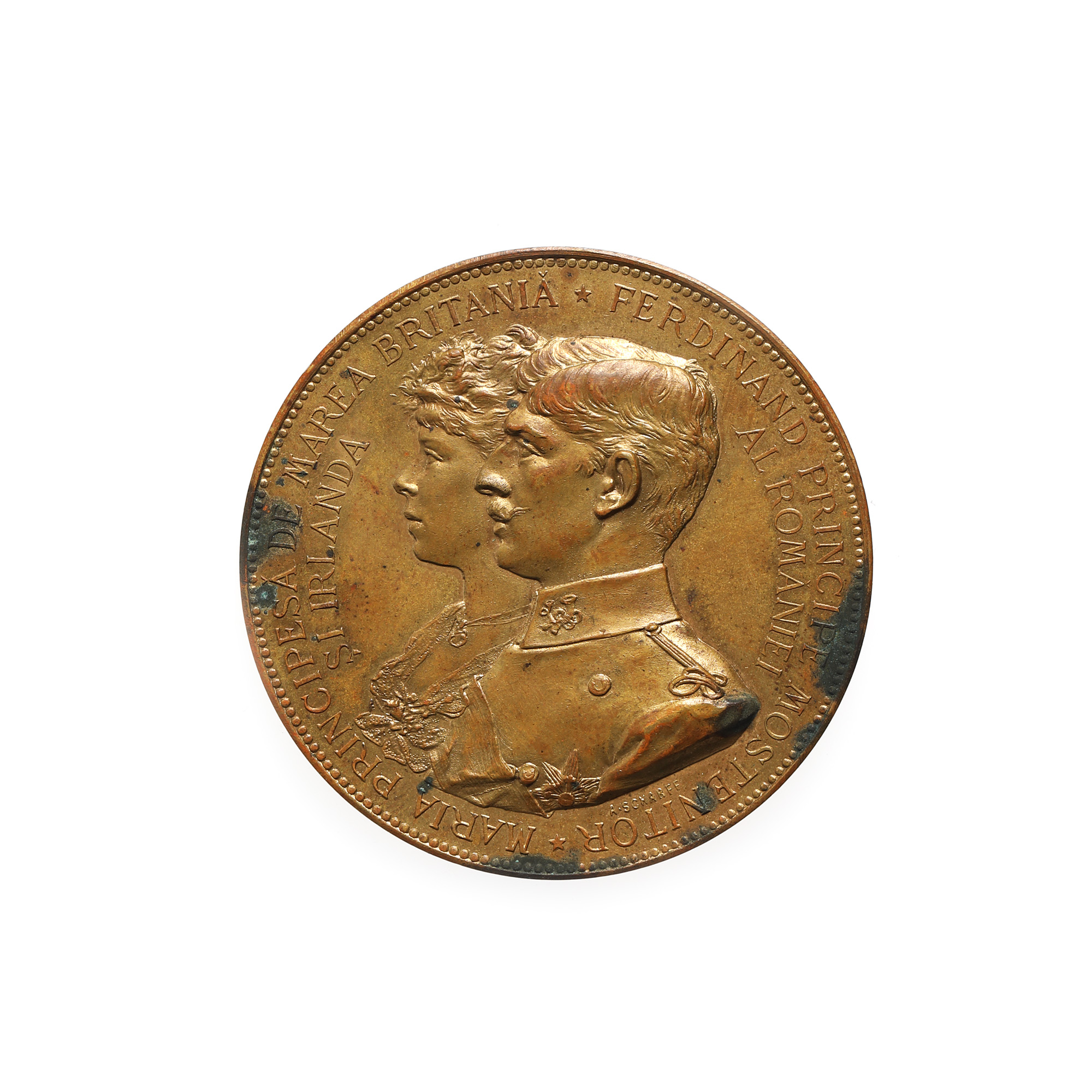 125. Medalia ”Logodna Principelui Ferdinand cu Maria, Principesă de Marea Britanie”, gravor Anton Scharff, 1893