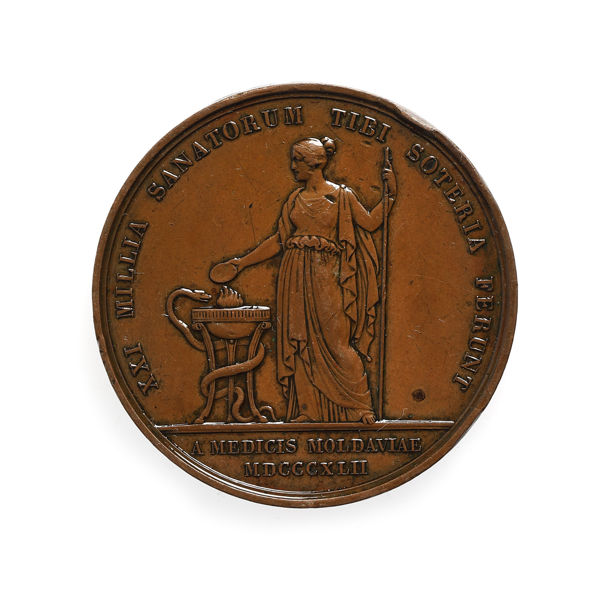 Medalia a fost bătută în anul 1842 la iniţiativa Colegiului Medicilor din Moldova şi oferită domnitorului Mihail Grigore Sturdza pentru deosebitele realizări în înfiinţarea de aşezăminte spitaliceşti pe care le-a organizat prin aducerea unor medici străini.