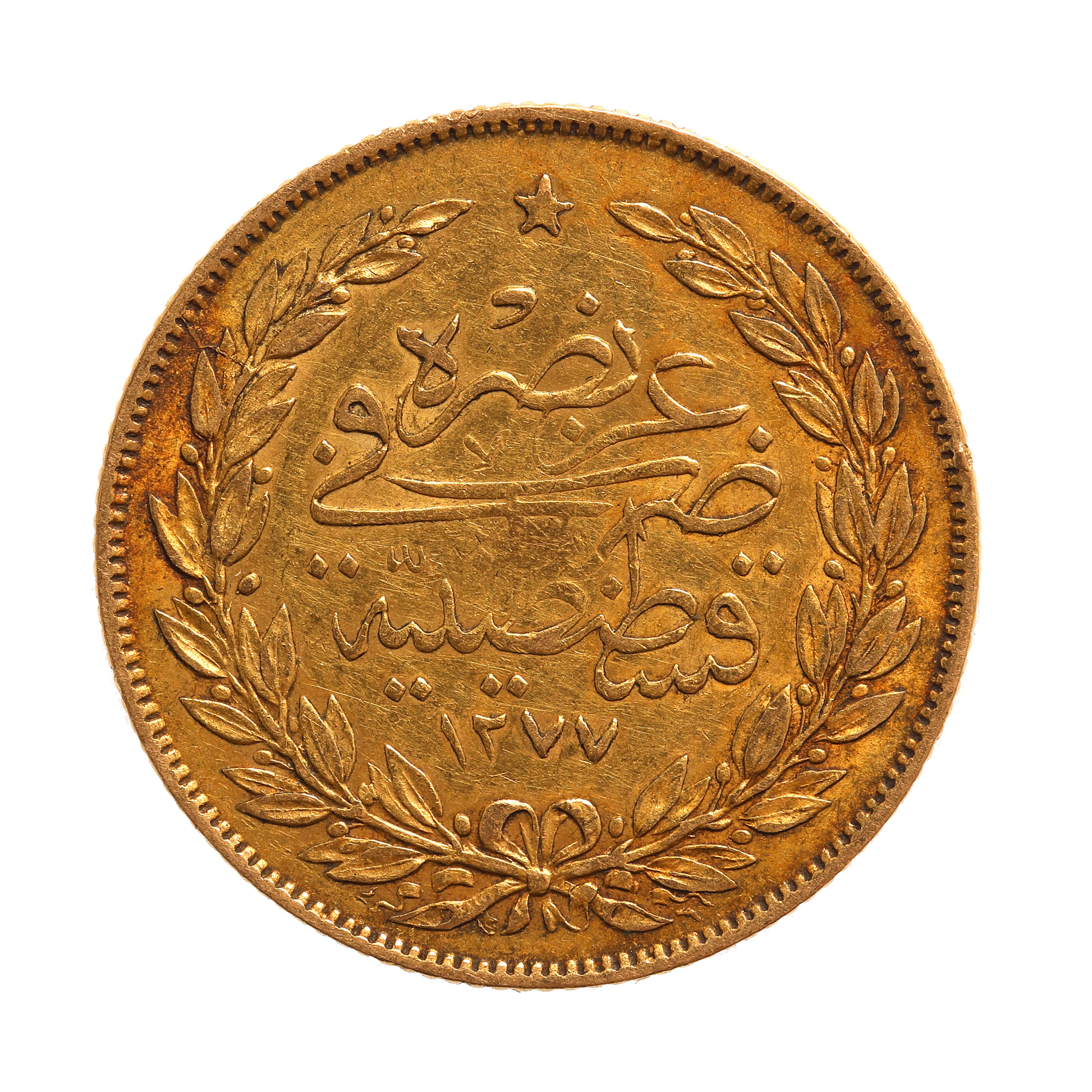 96. Monedă 100 piastri 1327 (1909), Imperiul Otoman, aur