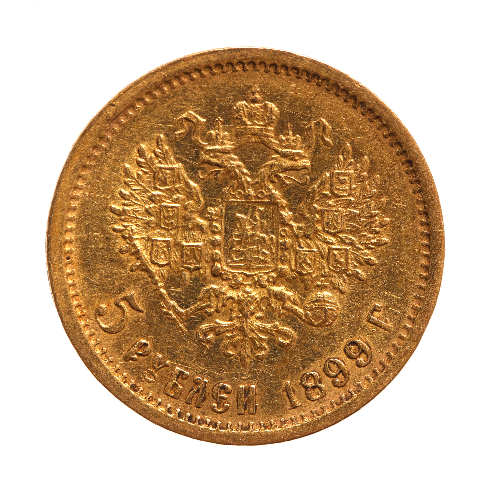105. Monedă 5 Ruble 1899, Imperiul Rus, aur