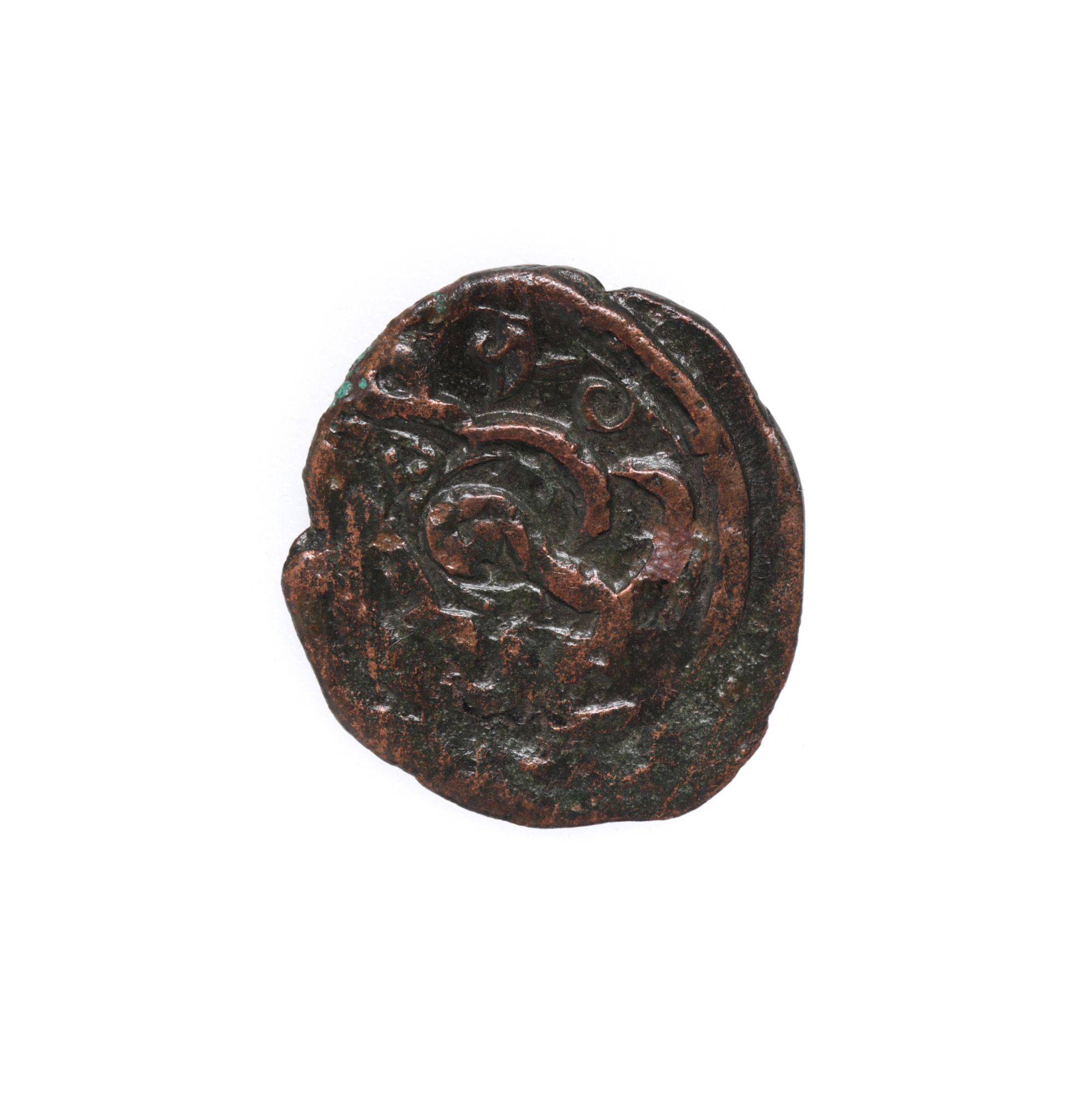 74F. Monedă de tip Șehr al-celid (Orașul Nou), Orheiul vechi, Moldova, mijlocul sec. XIV, piesă rară