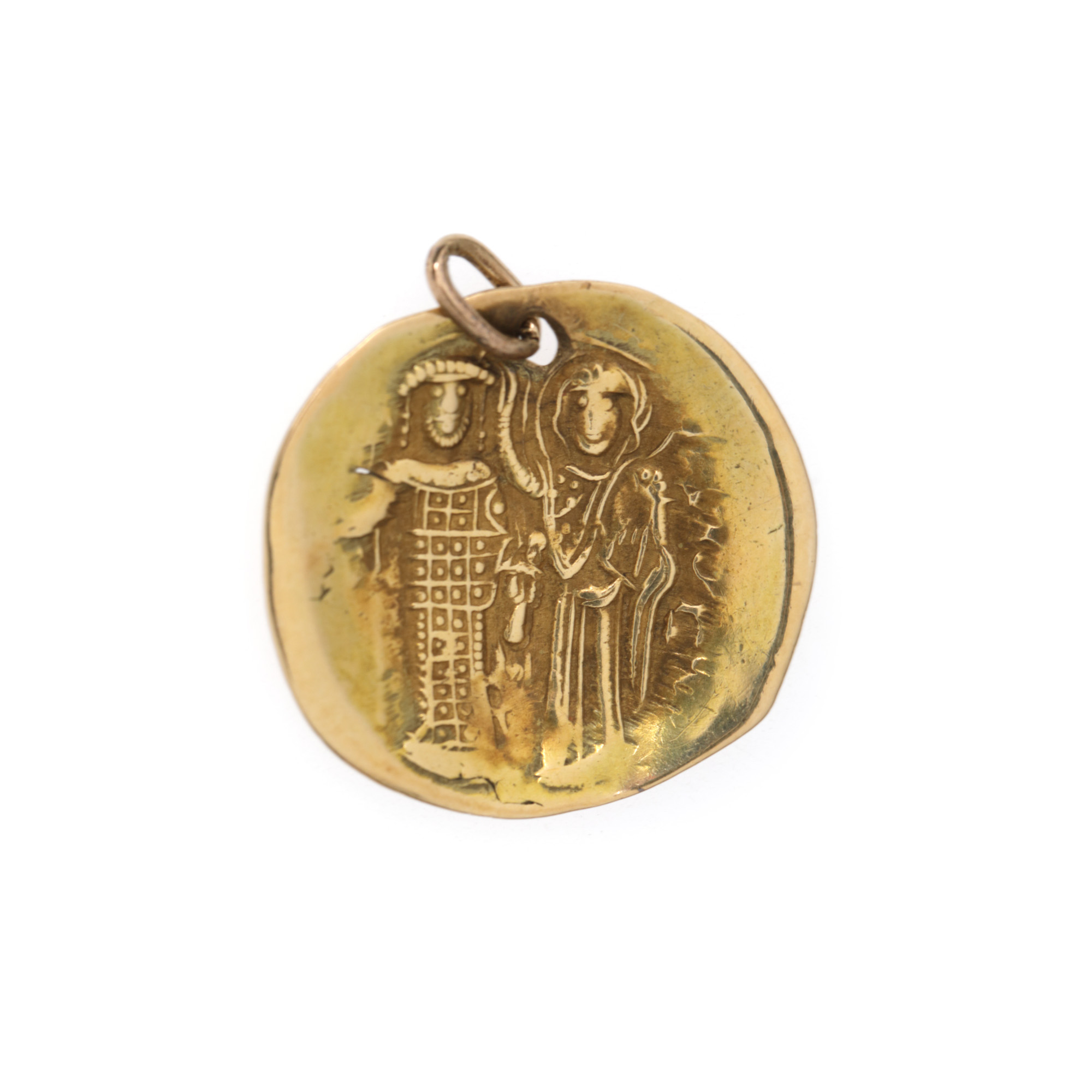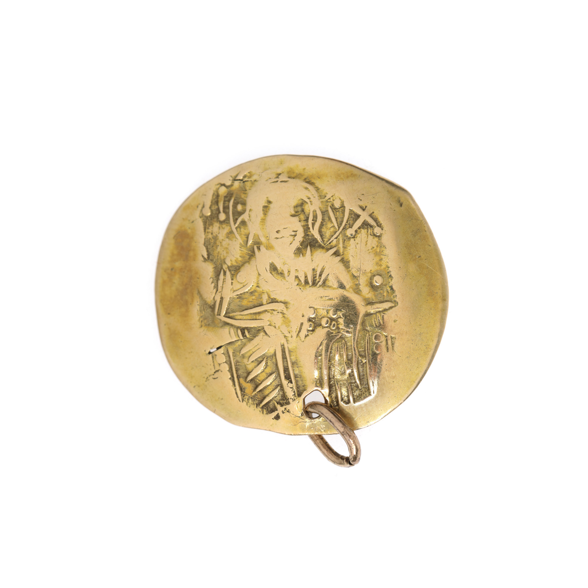 71F. Monedă Hyperpyron, transformată în pandantiv, din aur, emisă de Ioan III Ducas Vatațis, basileu al Imperiului de la Niceea, rezultat după prima Cădere a Constantinopolului, cca. 1225-1250