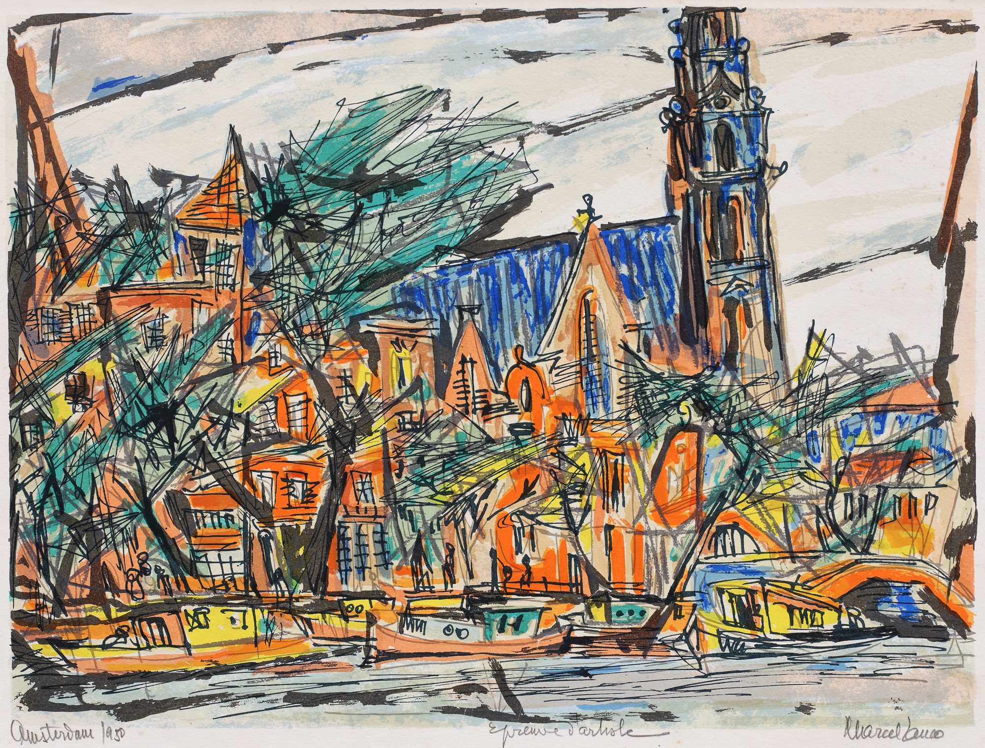 semnat dreapta jos, în creion, "Marcel Janco"; intitulat și datat stânga jos, în creion, "Amsterdam, 1950"; notat central jos, în creion, "Epreuve d'artiste"