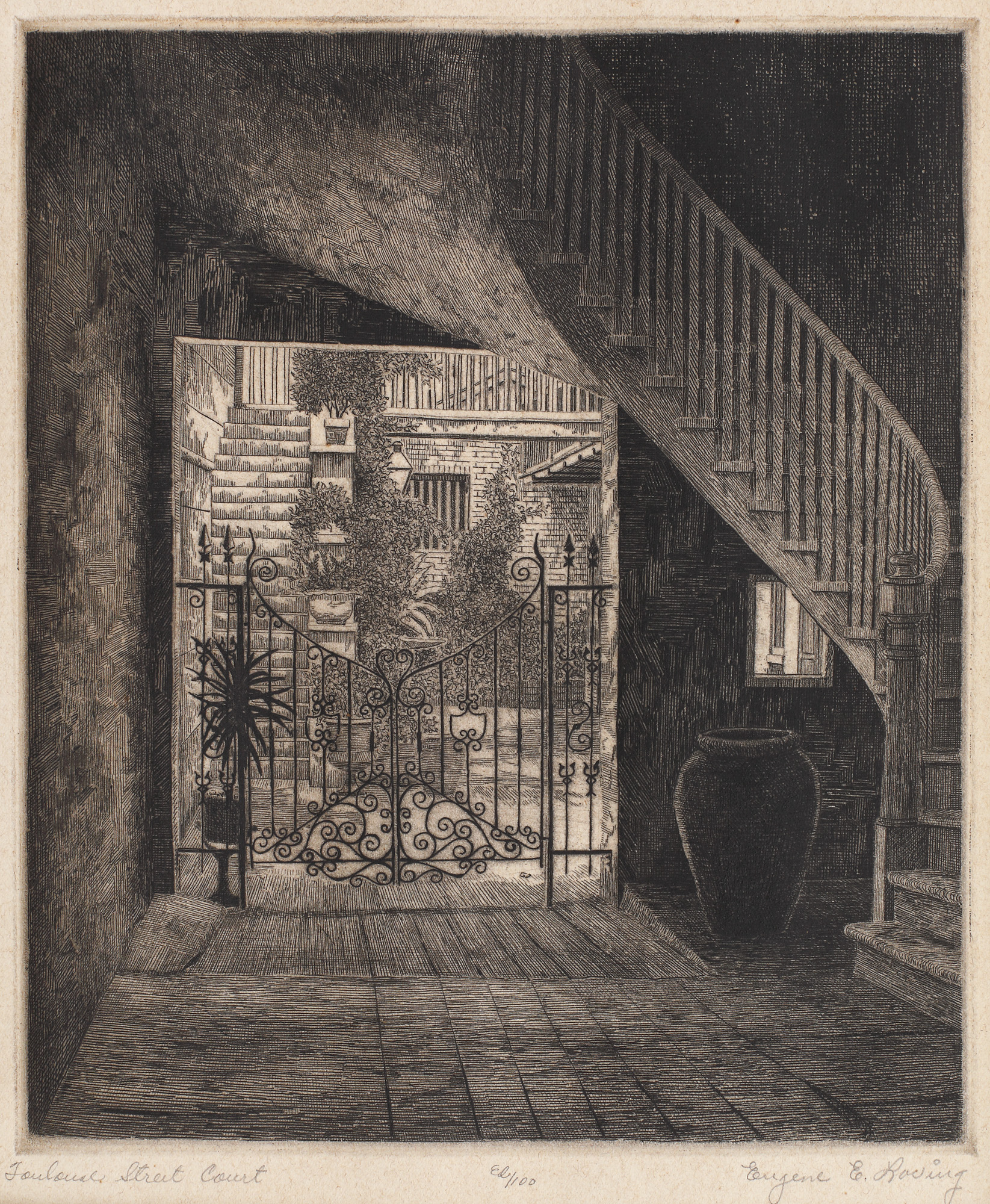 semnat dreapta jos, în creion, "Eugene E. Loving"; numerotat central jos, în creion, "EA/100"; intitulat stânga jos, în creion, "Toulouse Street Court"