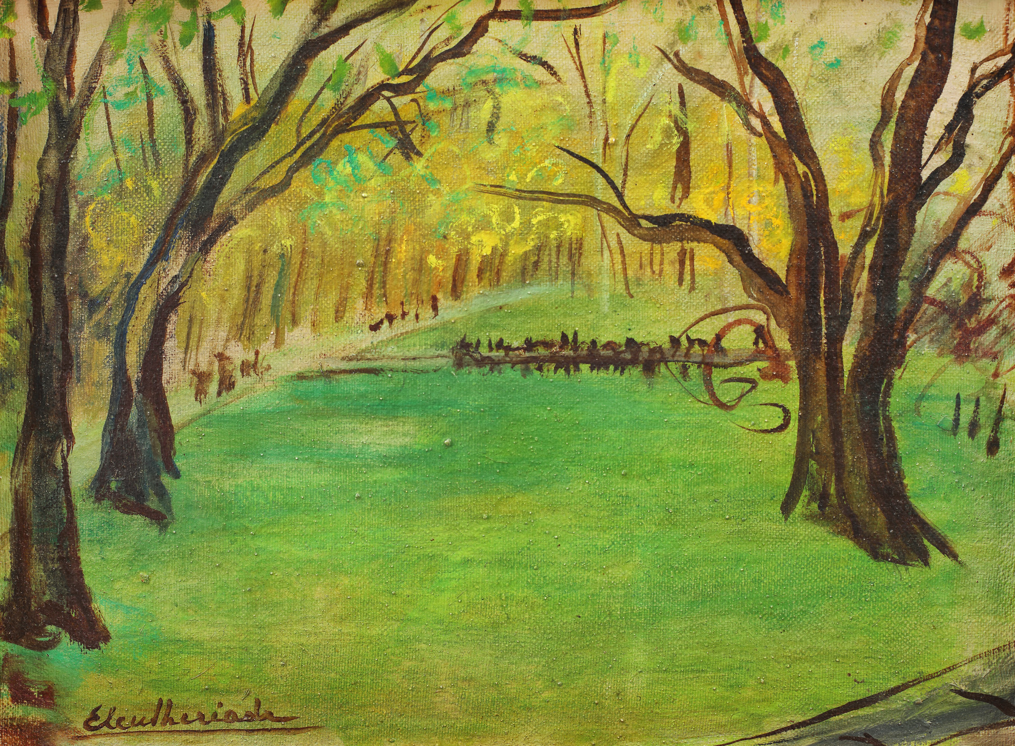 semnat stânga jos, cu brun, "Eleutheriade"