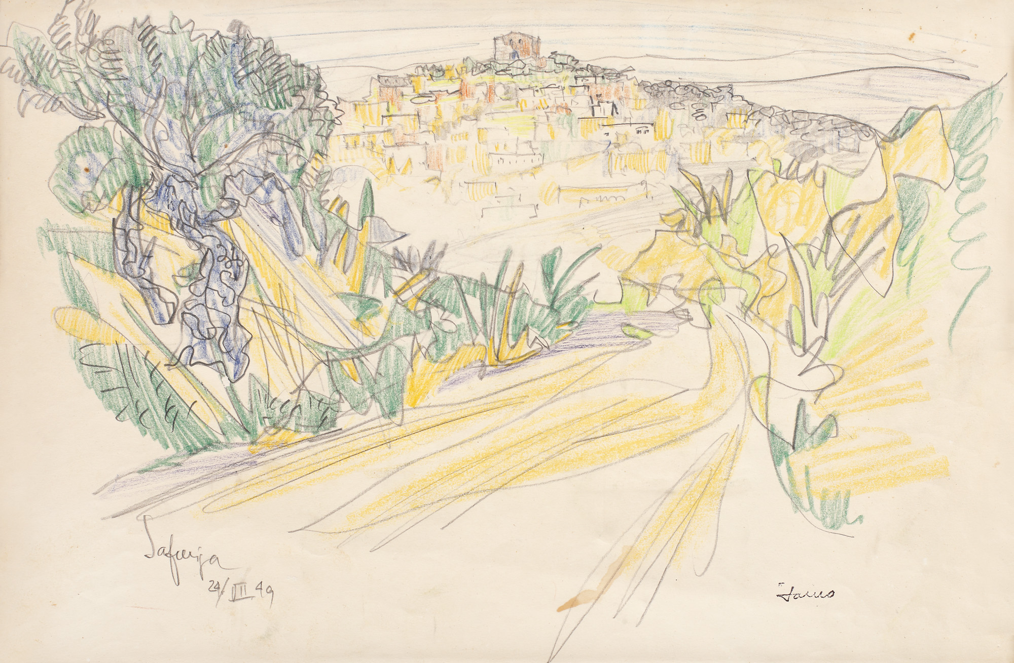 ștampilat dreapta jos, cu negru, "Ianco"; localizat și datat stânga jos, în creion, "Safaja, 24.VII.(19)49"