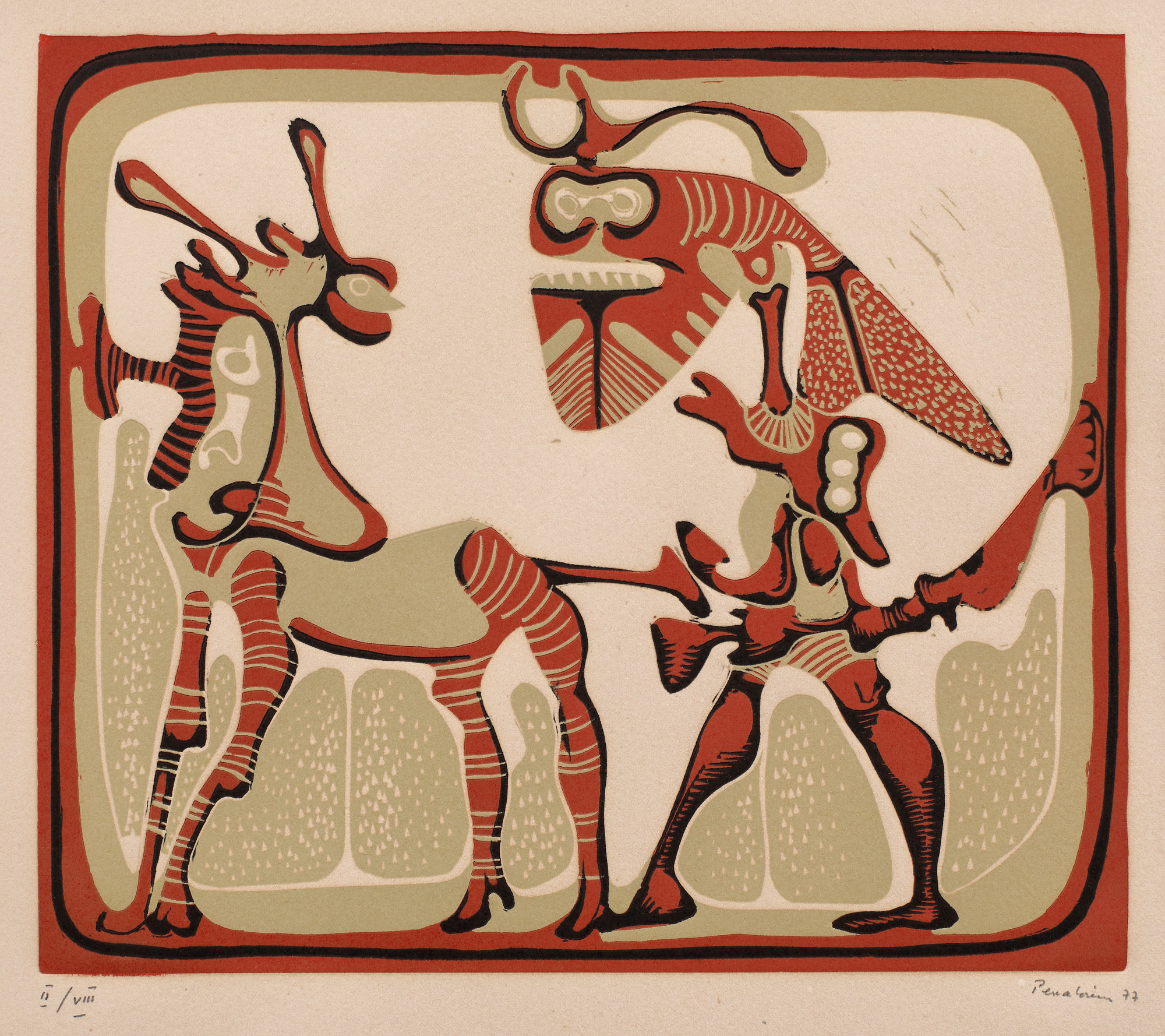 semnat și datat dreapta jos, în creion, "Perahim, (19)77"; numerotat stânga jos, în creion, "II/VIII"
