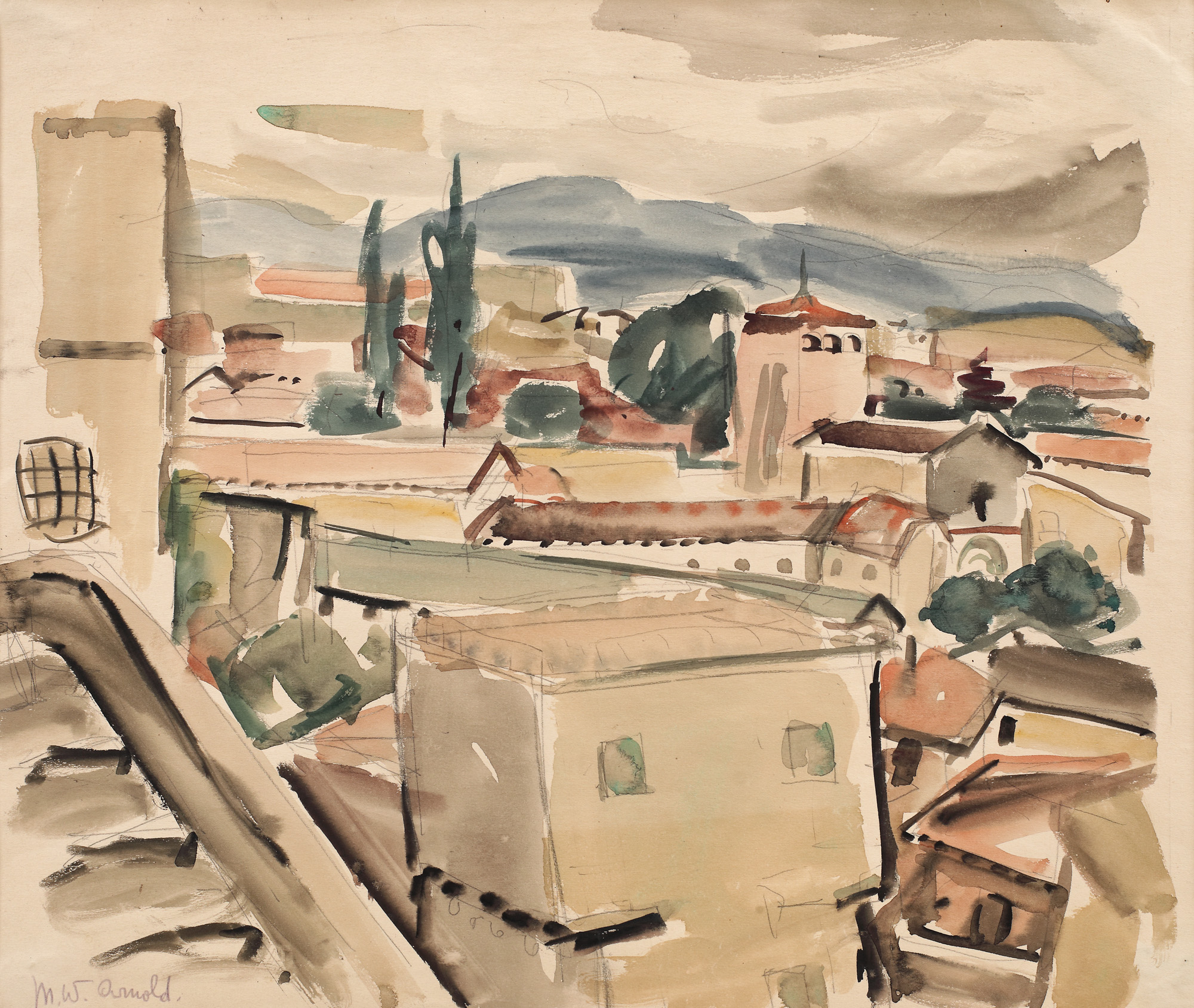 semnat stânga jos, în creion, "M.W. Arnold"