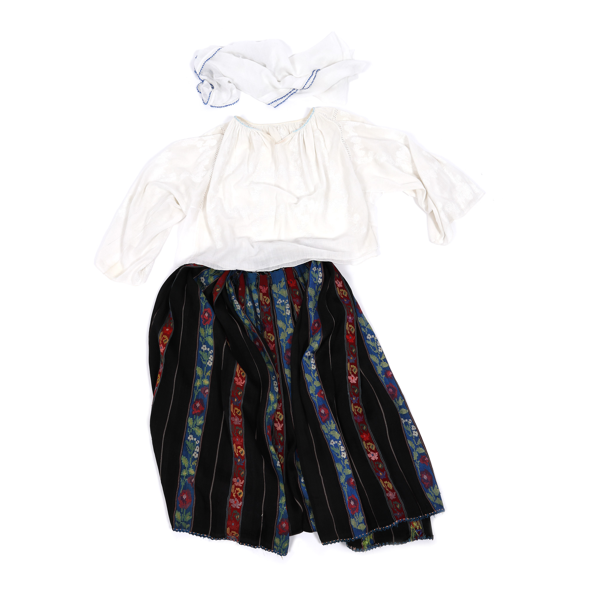 61. Costum popular format din ie și vâlnic din mătase, zona Mehedinți, cca. 1950
