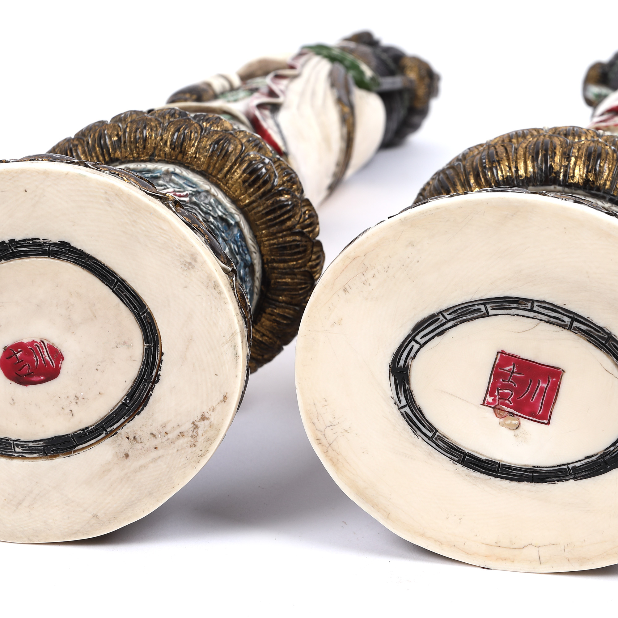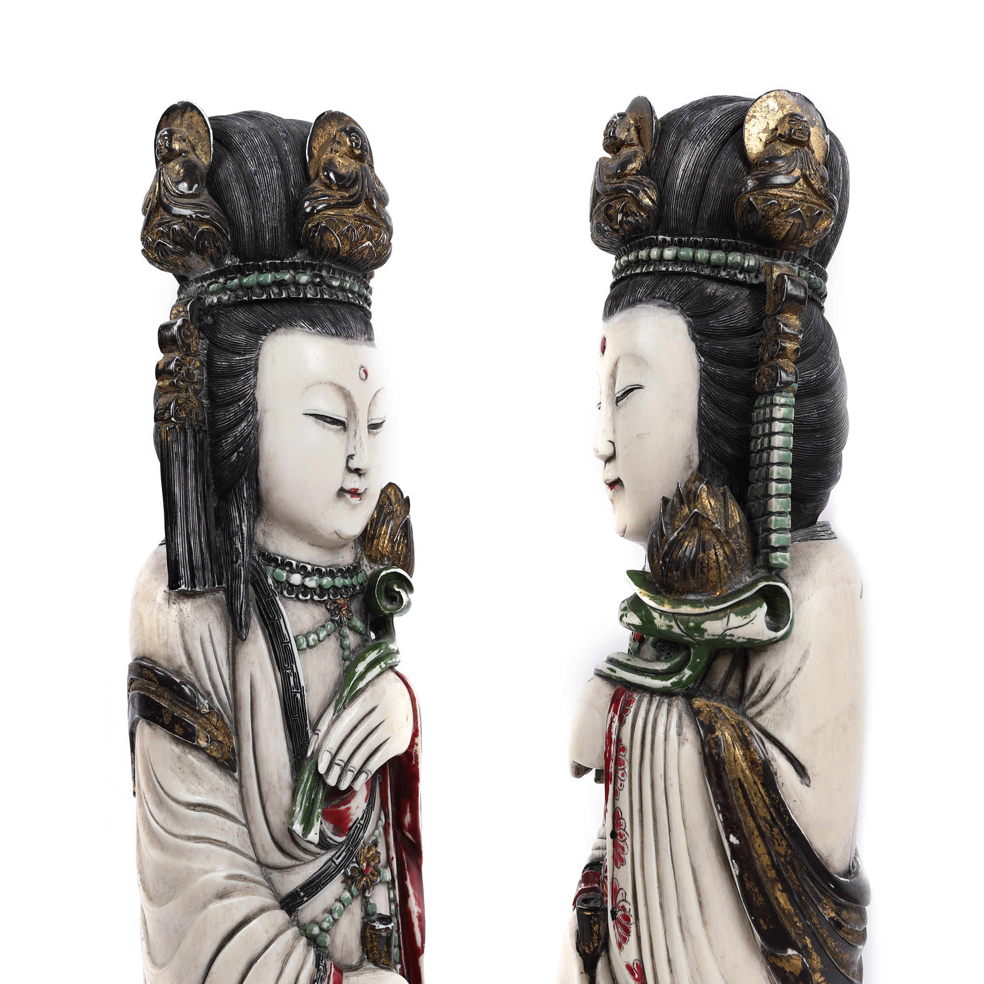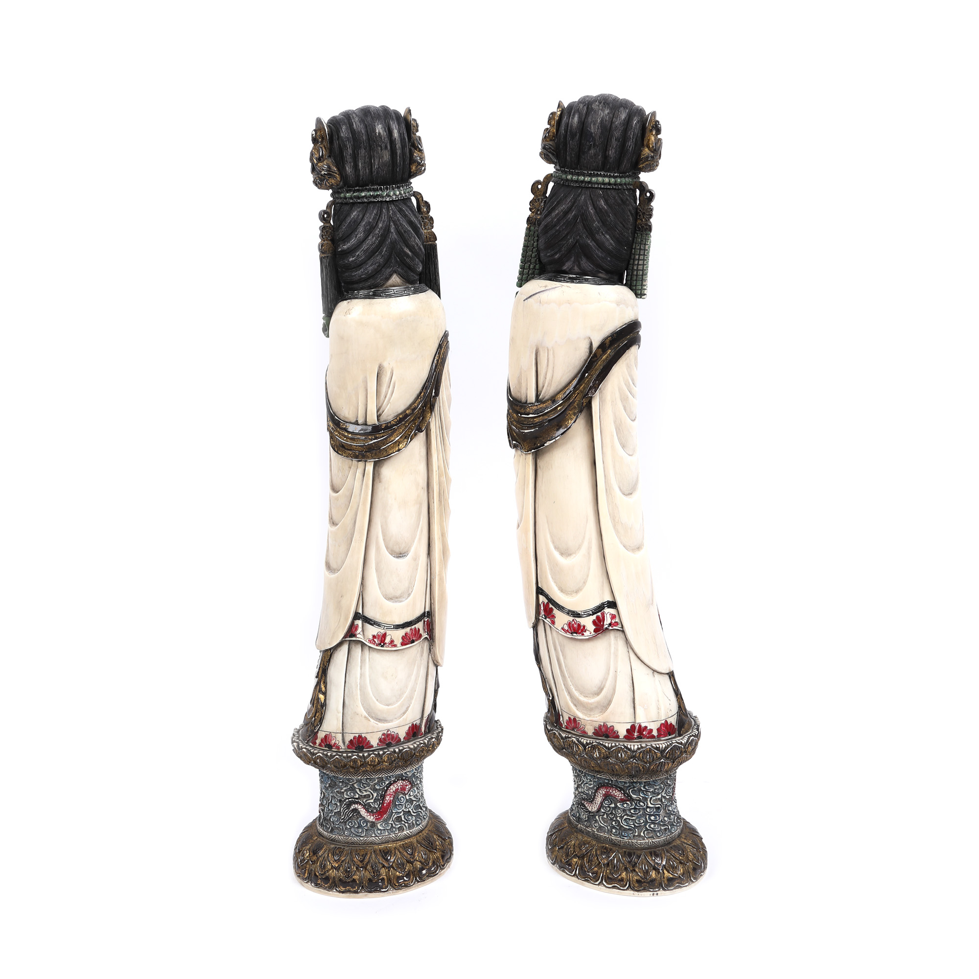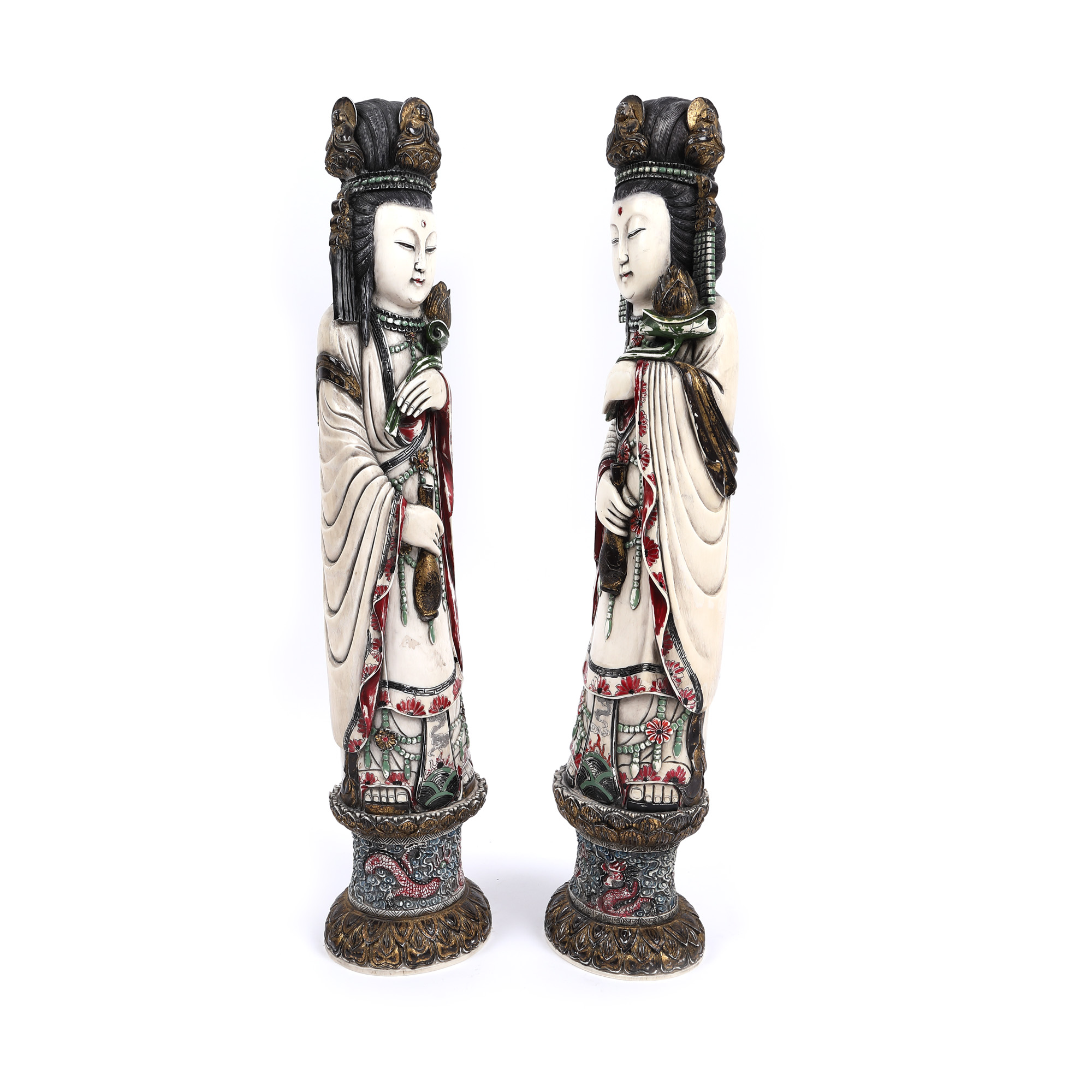 69. Pereche de statuete din fildeș, reprezentând două curtezane, pictate, perioada dinastiei Qing, China, sec. XIX, piesă rară