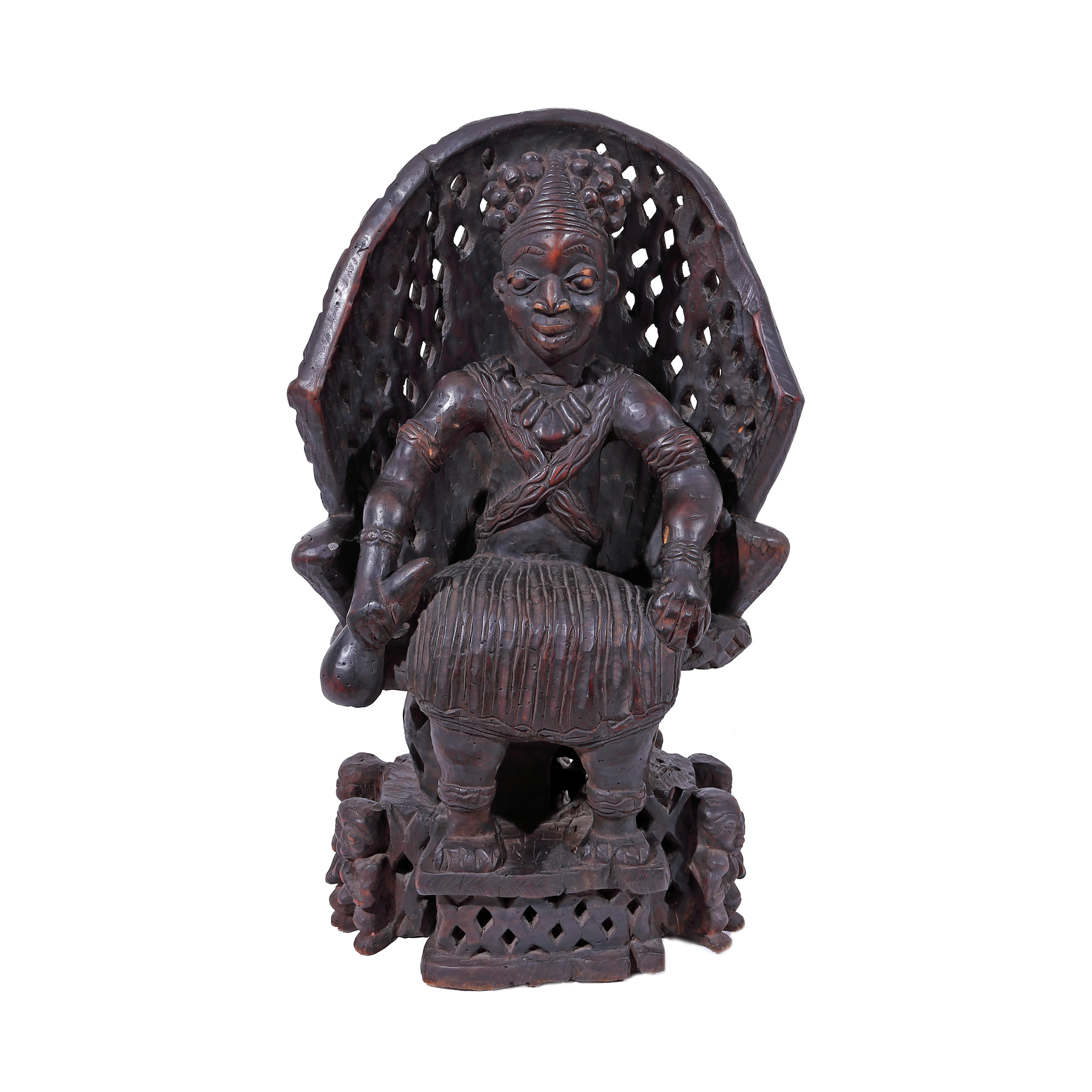 56. Statuetă înfățișând un rege împreună cu supușii, posibil aparținând Regatului Benin, Camerun [jumătatea sec. XX]