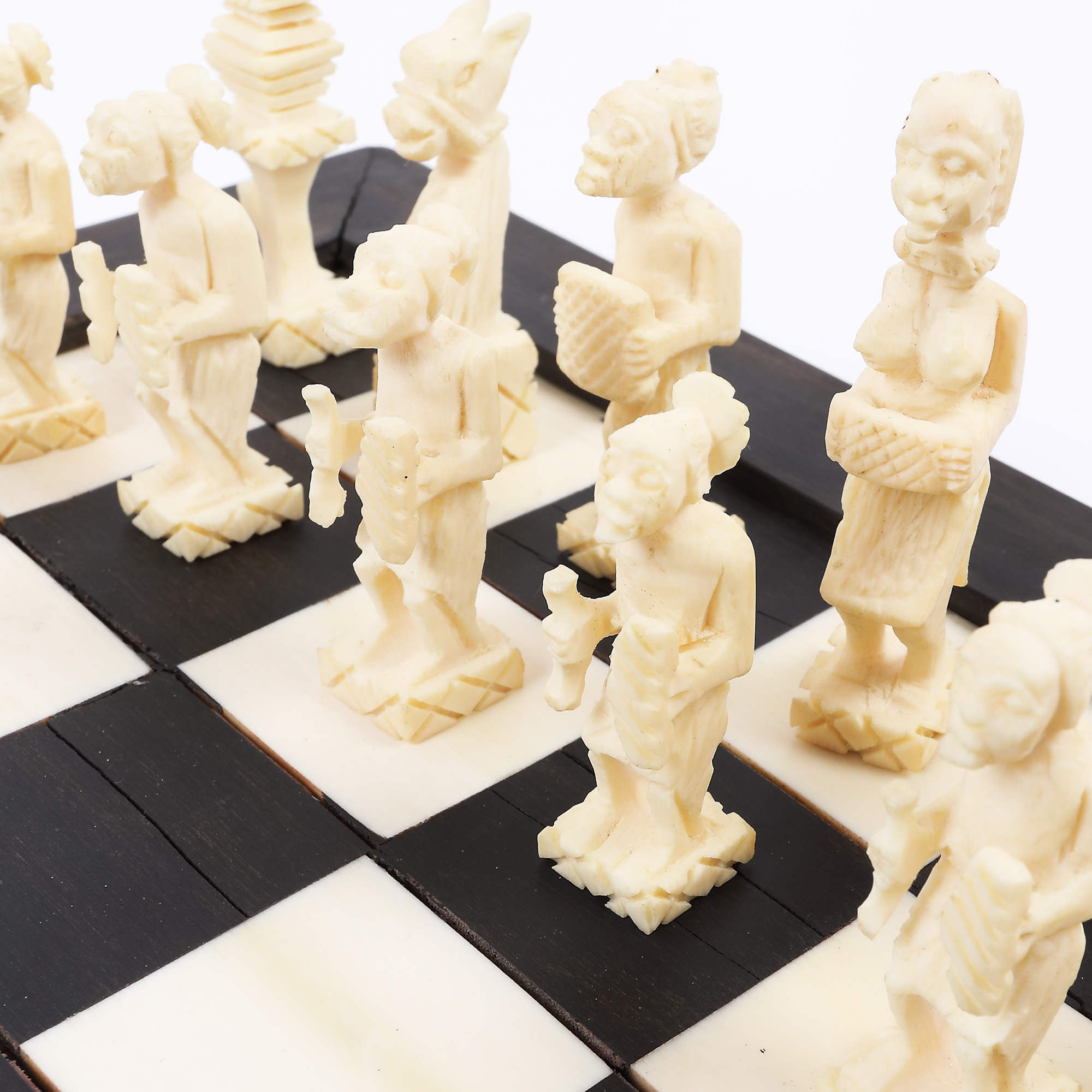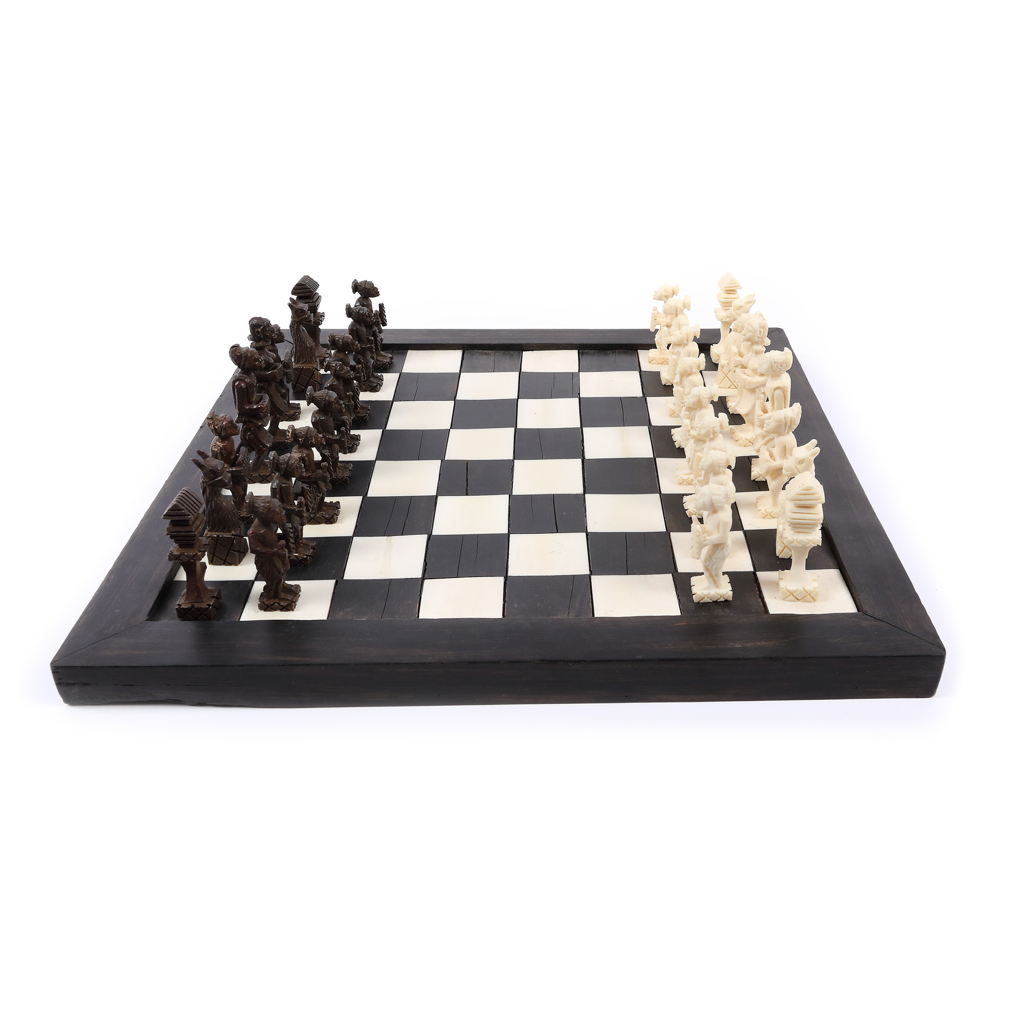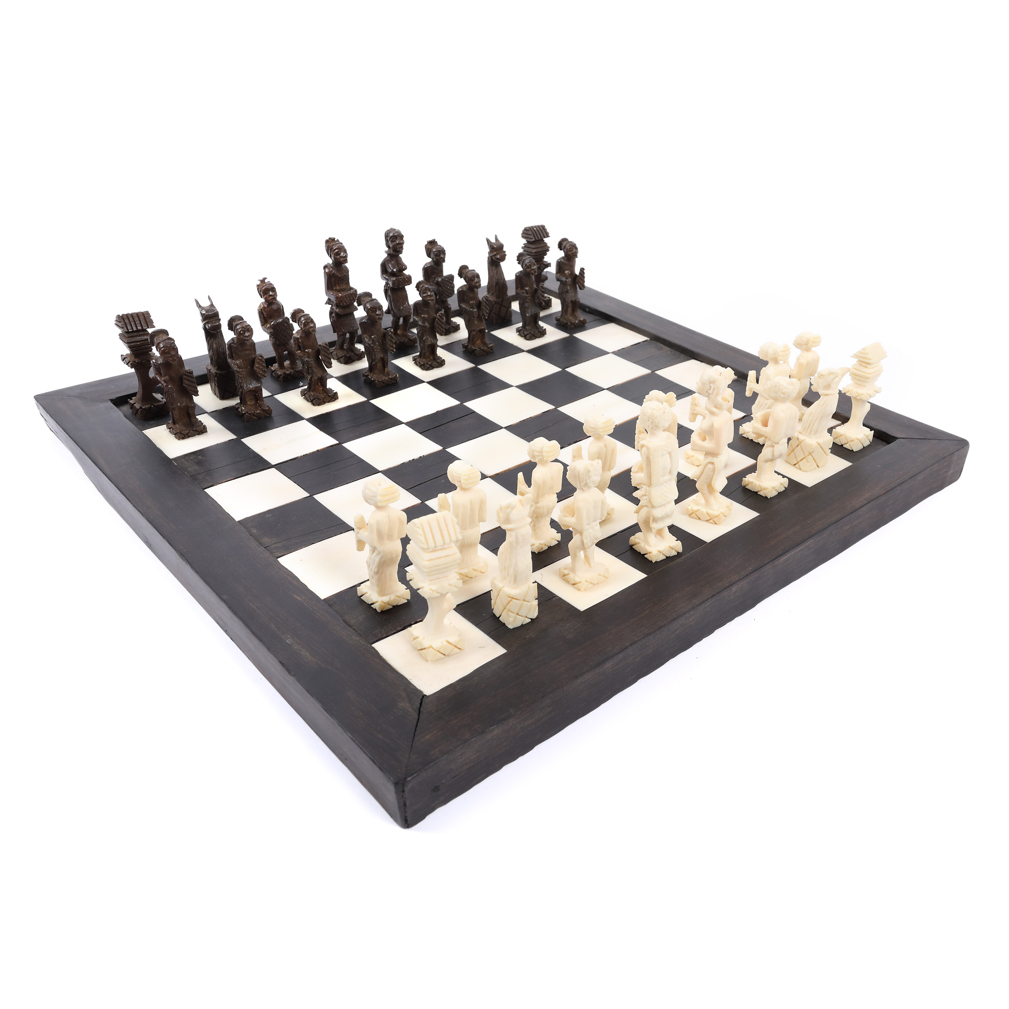 67. Tablă de șah cu piese din lemn exotic si fildeș [a doua jumătate a sec. XX]