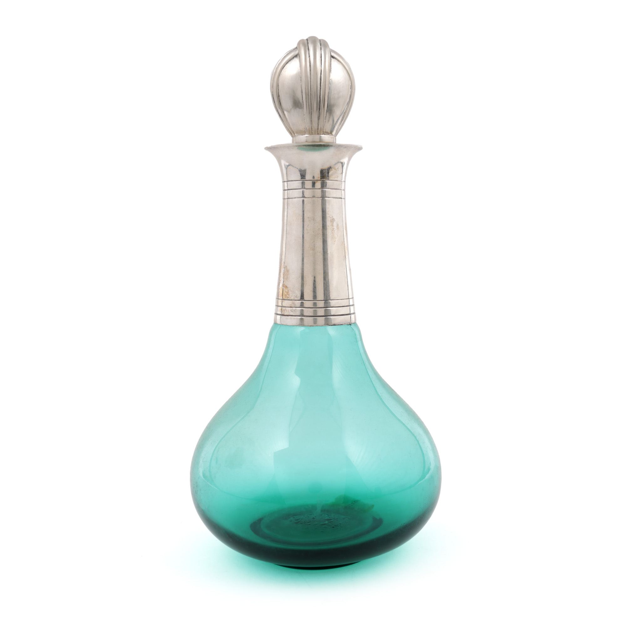 55. Carafă Sezession, montură și dop din argint, începutul sec. XX