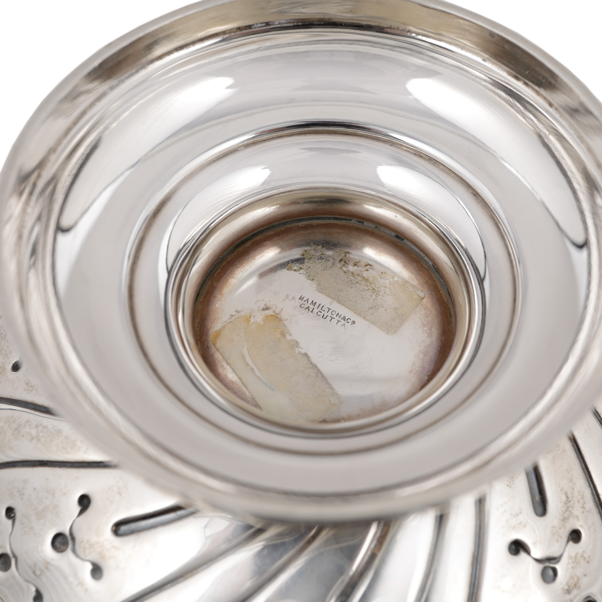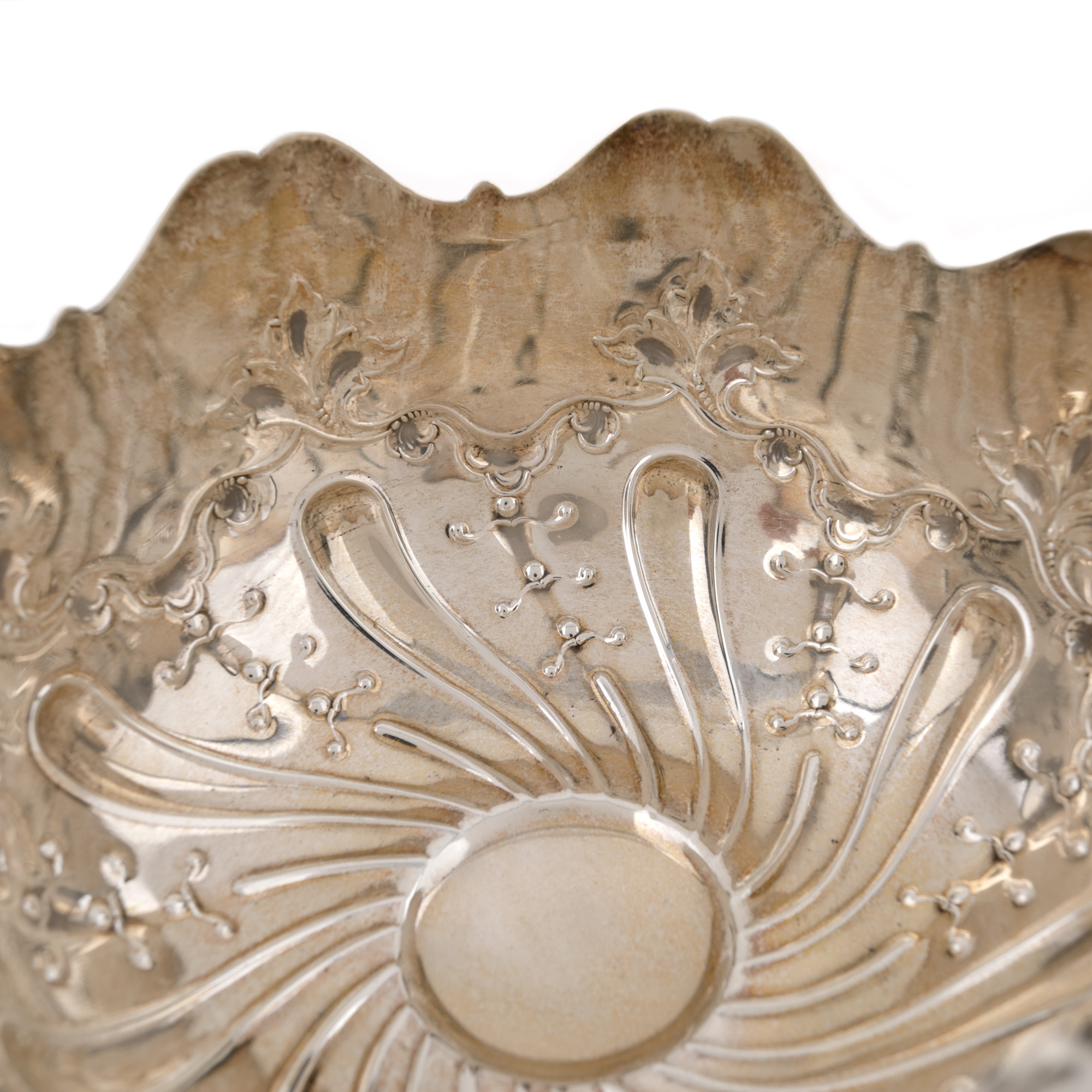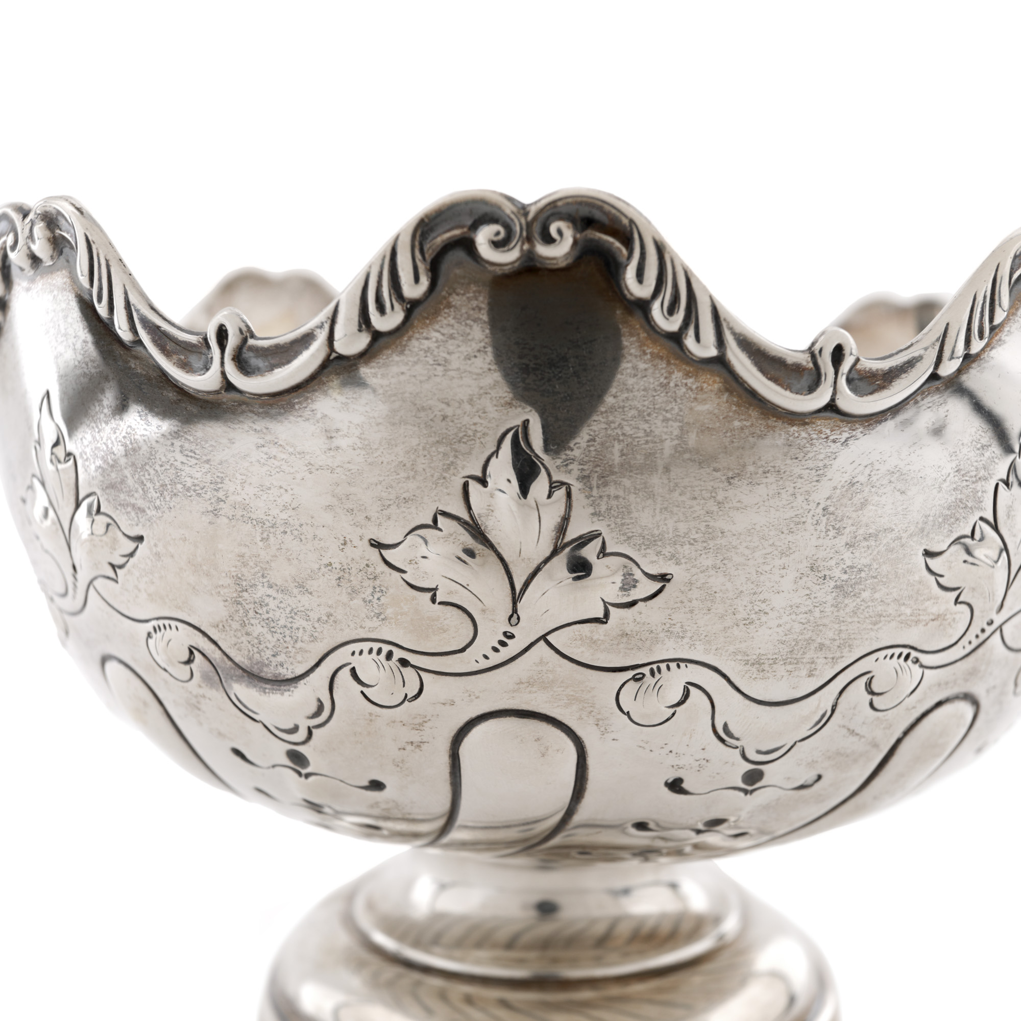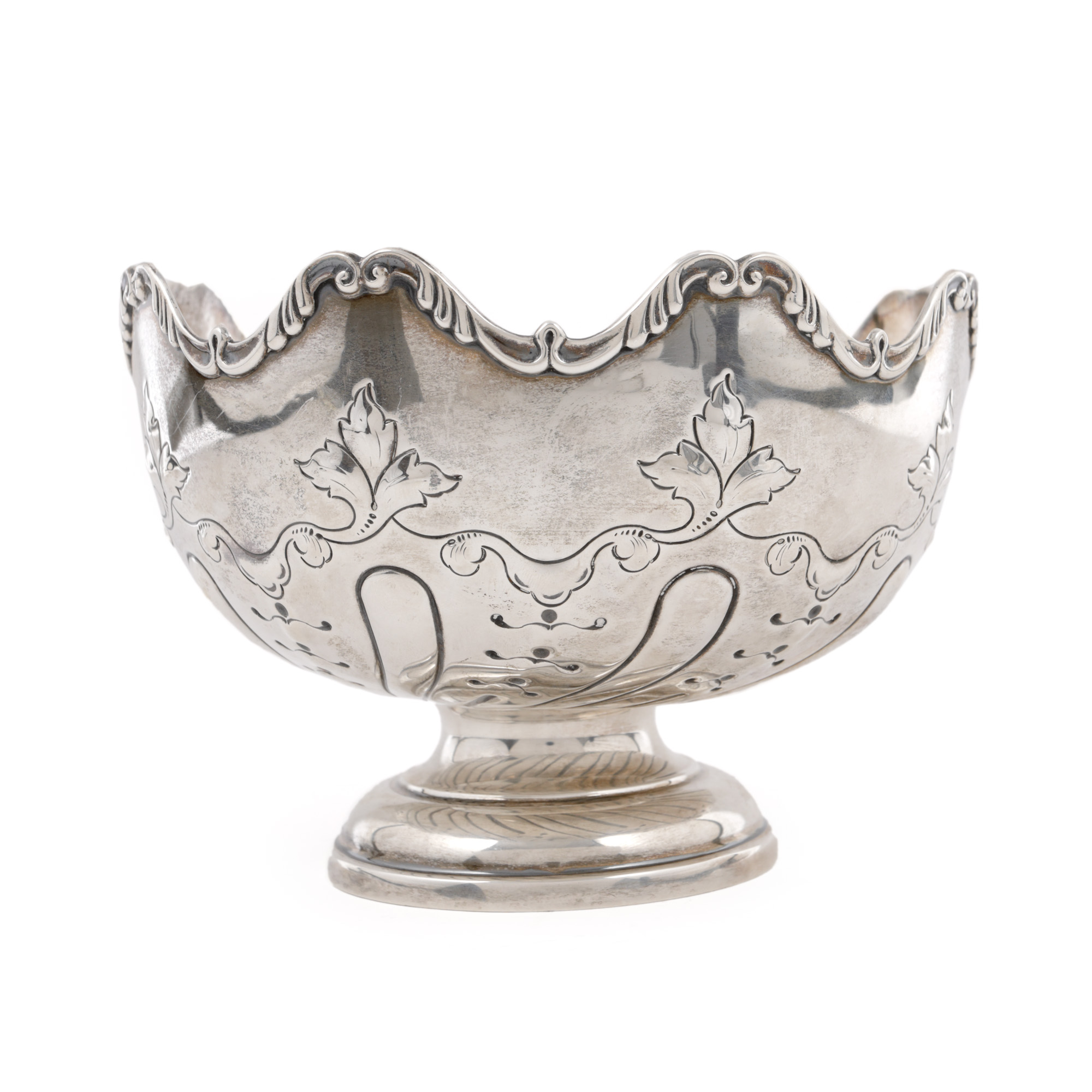 65. Inedită fructieră din argint Hamilton, decorată cu frunze de arțar, începutul sec. XX