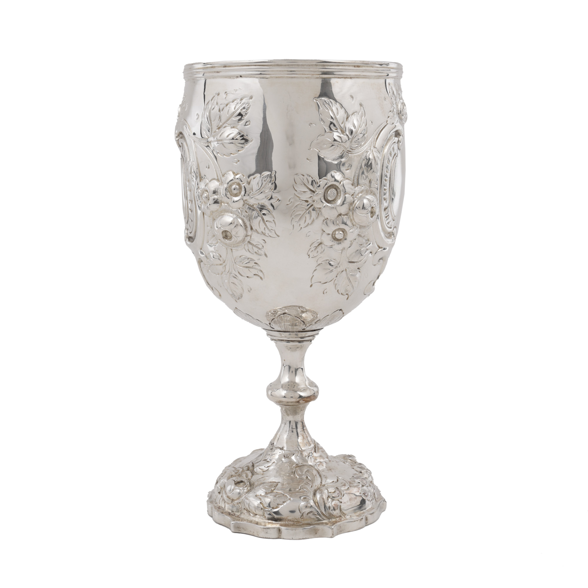 66. Pocal Victorian din argint, decorat cu flori de măceș, 1866