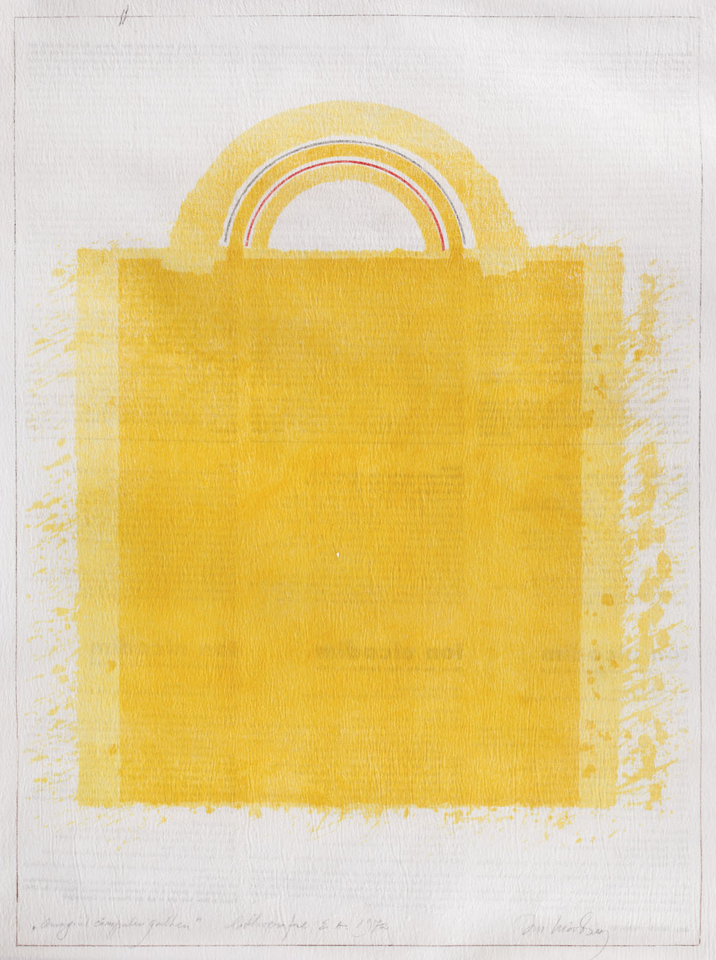 semnat, datat, intitulat și notat central jos, în creion, "Ion Nicodim, 1972, Omagiu cîmpului galben, E.A., lithografie"