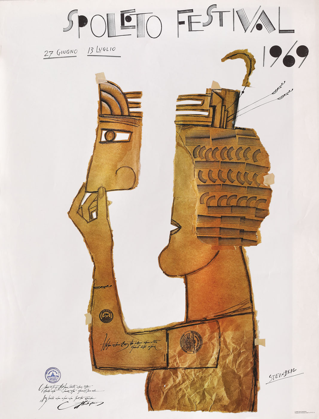 semnat dreapta jos, în placă, "Steinberg"; notat dreapta jos, "1969, Saul Steinberg, Printed by Solomon and Co., NYC"