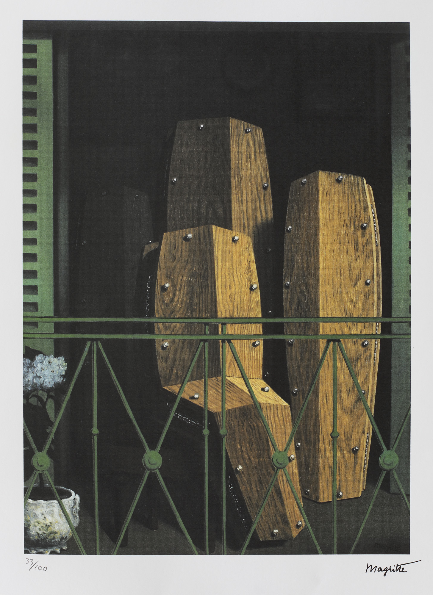semnat dreapta jos, sub cadru, ”Magritte”; numerotat stânga jos, sub cadru, în creion, ”33/100”; stânga jos, ștampila editurii, ”SPADEM PARIS”