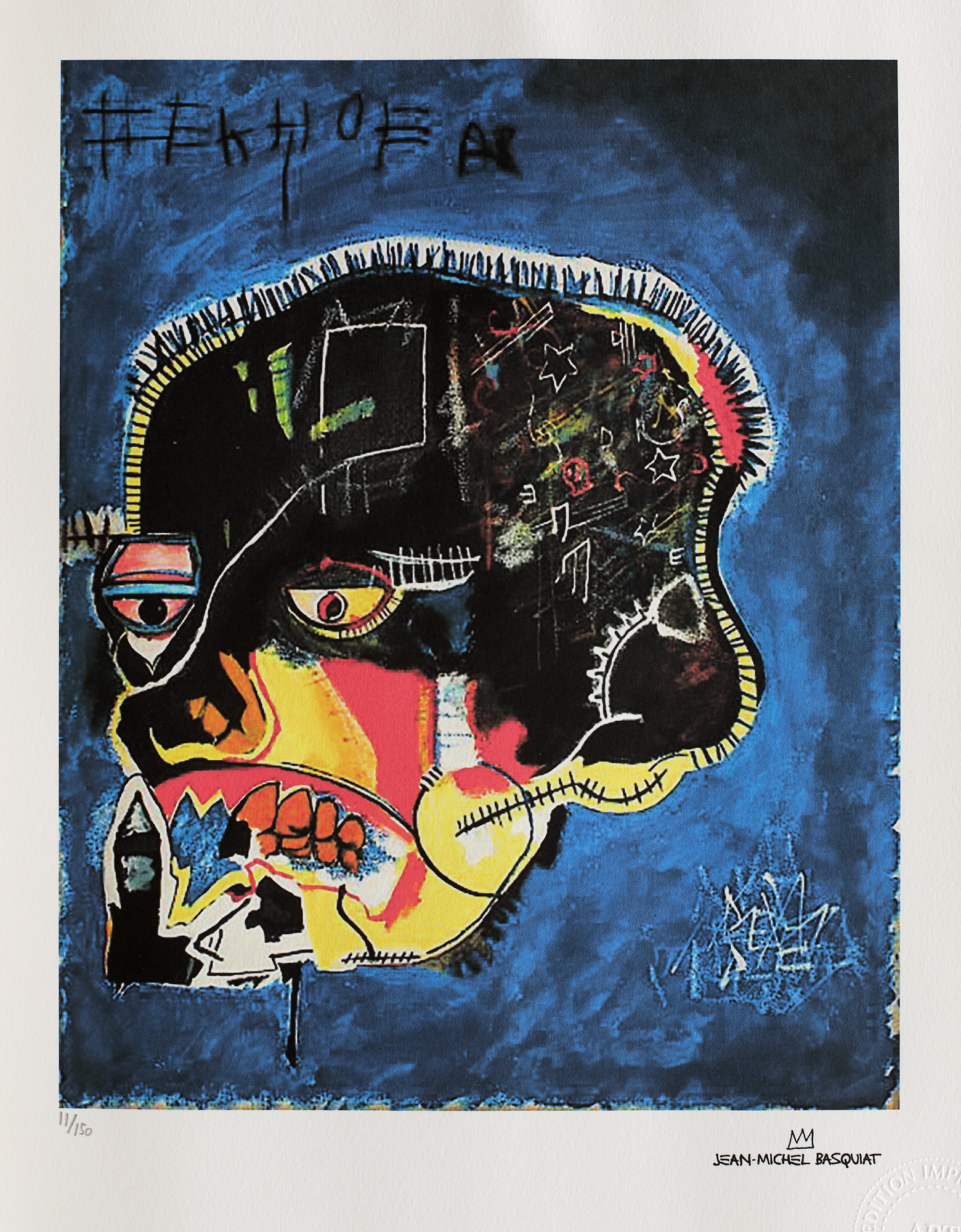 semnat dreapta jos, sub cadru, ”JEAN-MICHEL BASQUIAT”; numerotat stânga jos, sub cadru, în creion, ”11/250”;