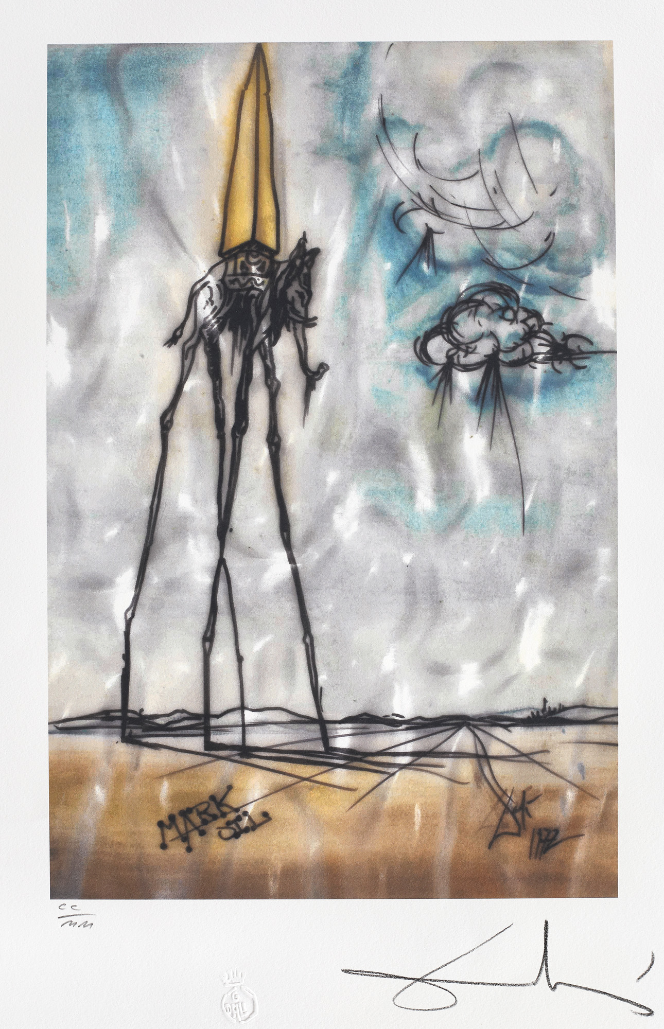 semnat dreapta jos, sub cadru, în creion, ”Dali”; numerotat stânga jos, sub cadru, în creion, ”CC/MM”; stânga jos, ștampila editurii, ”G. Dali”