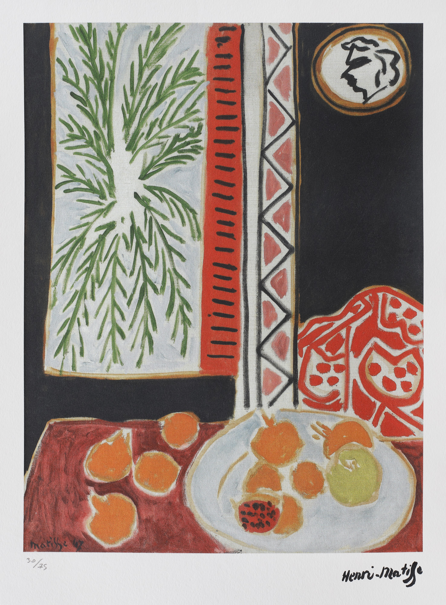 semnat dreapta jos, gravat, "Henri Matisse"; numerotat stânga jos, în creion, "30/75"; stânga jos, ștampila editurii, ”SPADEM Paris”