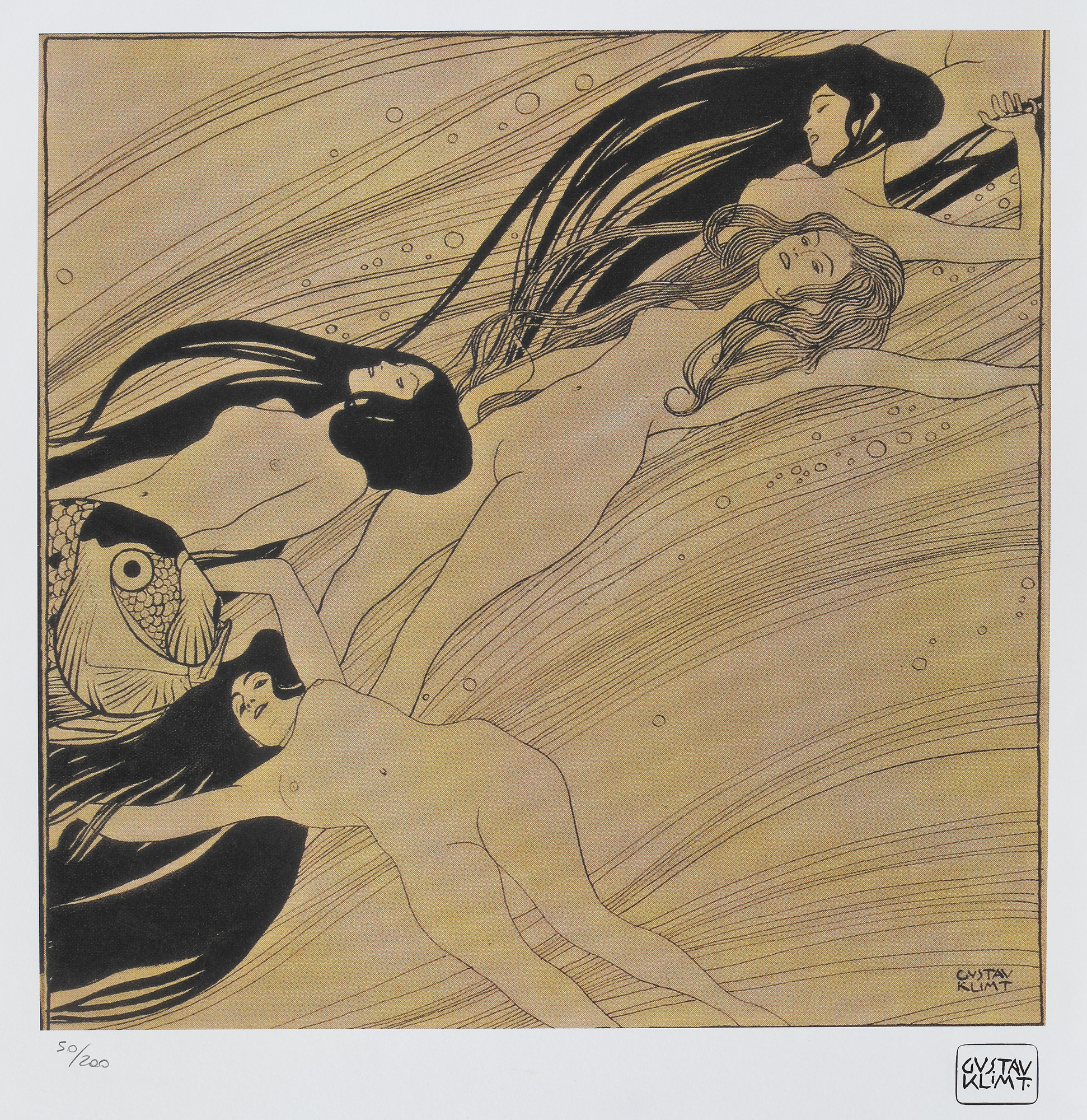 semnat dreapta jos, sub cadru, ”GUSTAV KLIMT”; numerotat stânga jos, sub cadru, în creion, ”50/200”