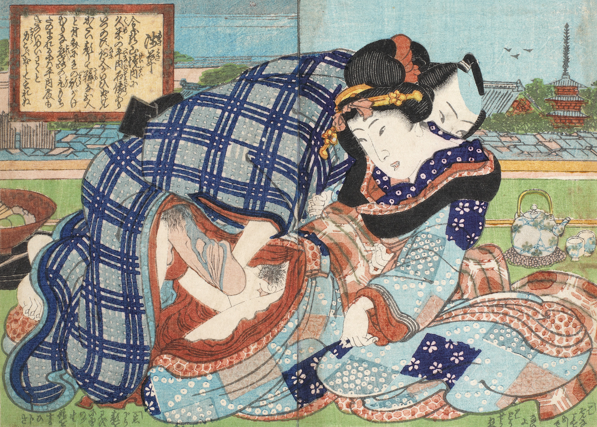 74. Scenă erotică (Shunga), ilustrând un cuplu în aer liber, după ceremonia ceaiului [începutul sec. XIX]