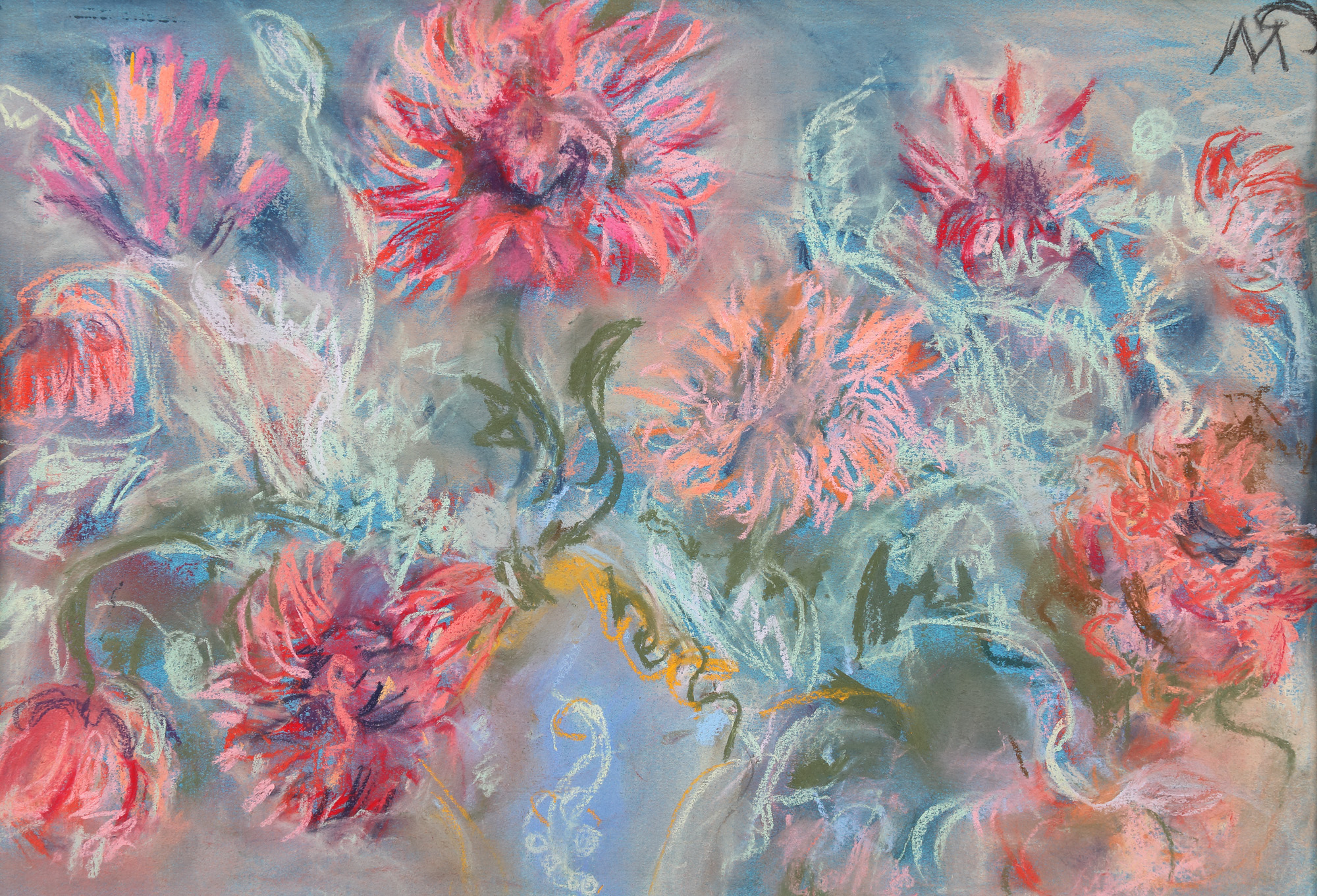 semnat dreapta sus, cu negru, în monogramă, "MP"