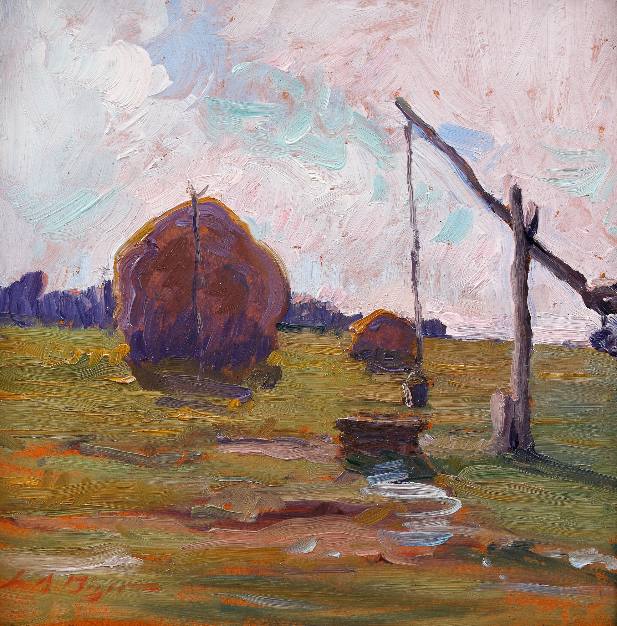 semnat stânga jos, cu roșu, ”L.A. Biju”