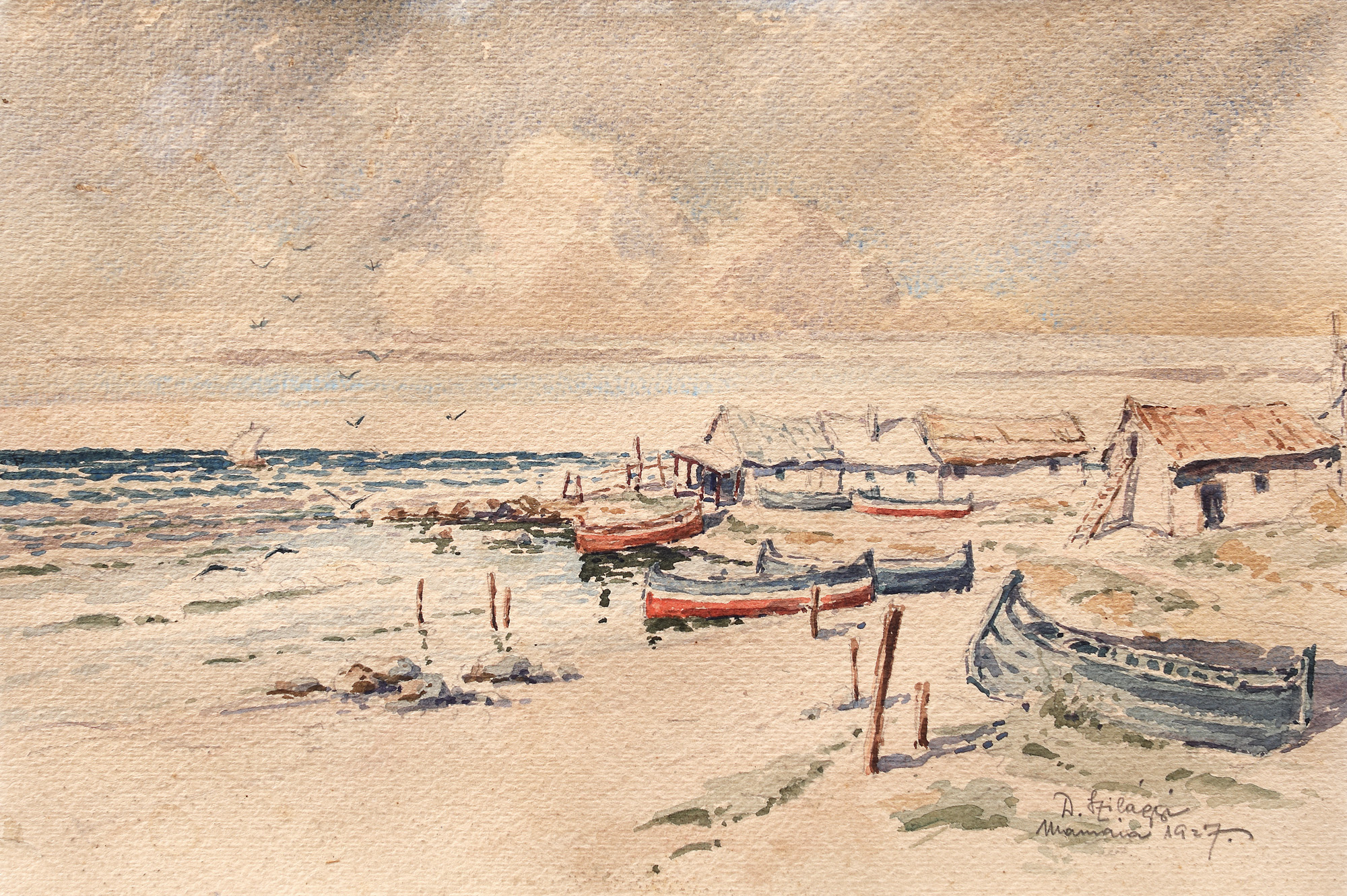 semnat, datat și localizat, dreapta jos, în creion, ”D. Szilaghi, Constanța, 1927”
