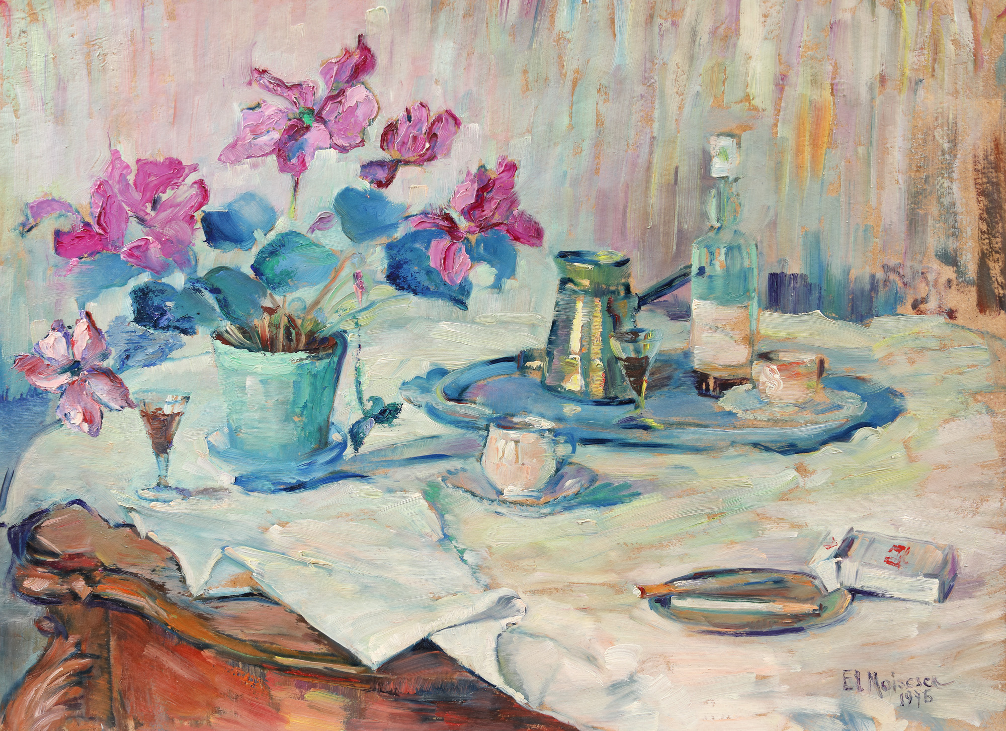 semnat și datat dreapta jos, cu mov, ”El. Moisescu, 1976”