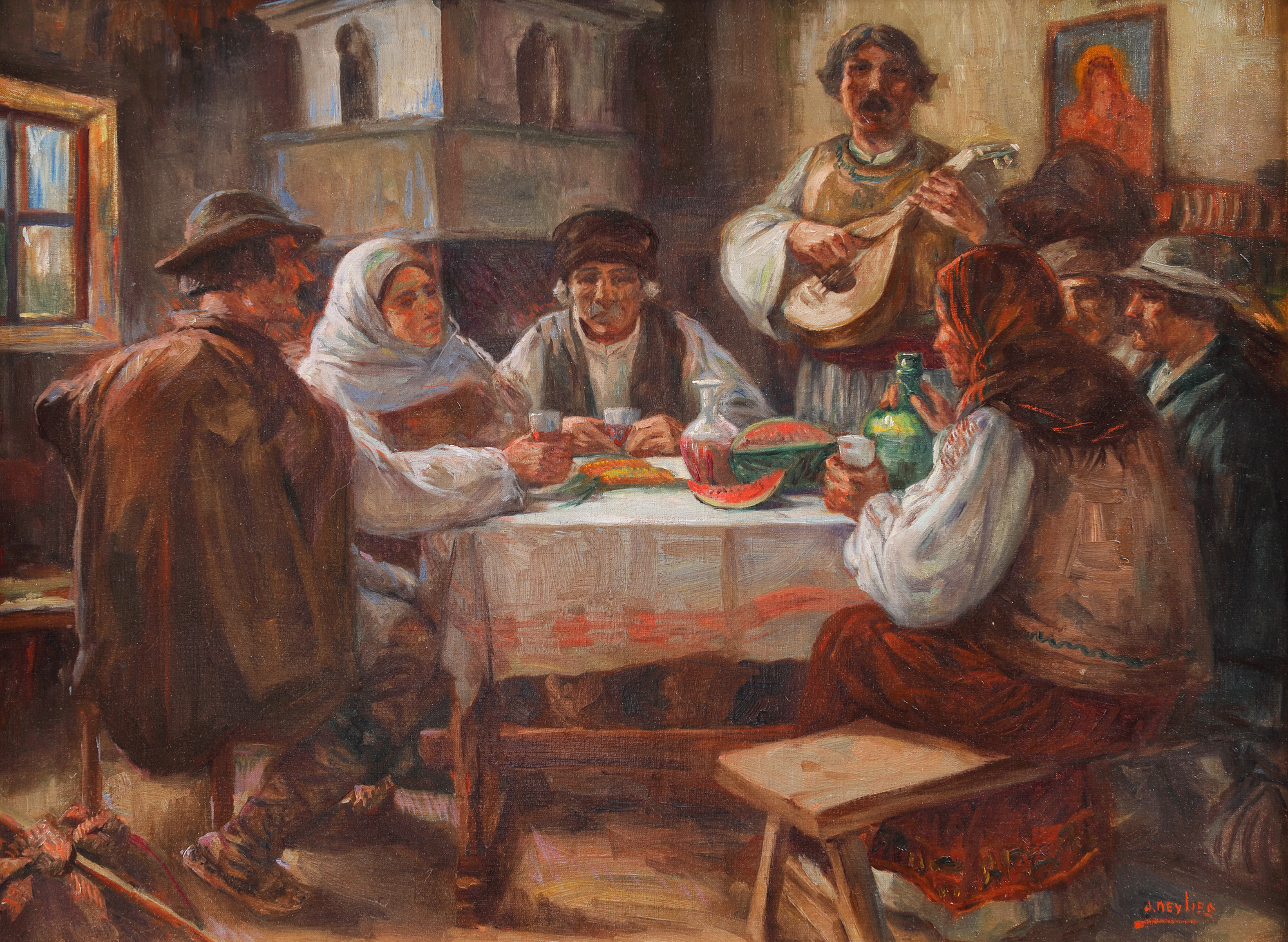 semnat dreapta jos, cu roșu, "J. Neylies"
