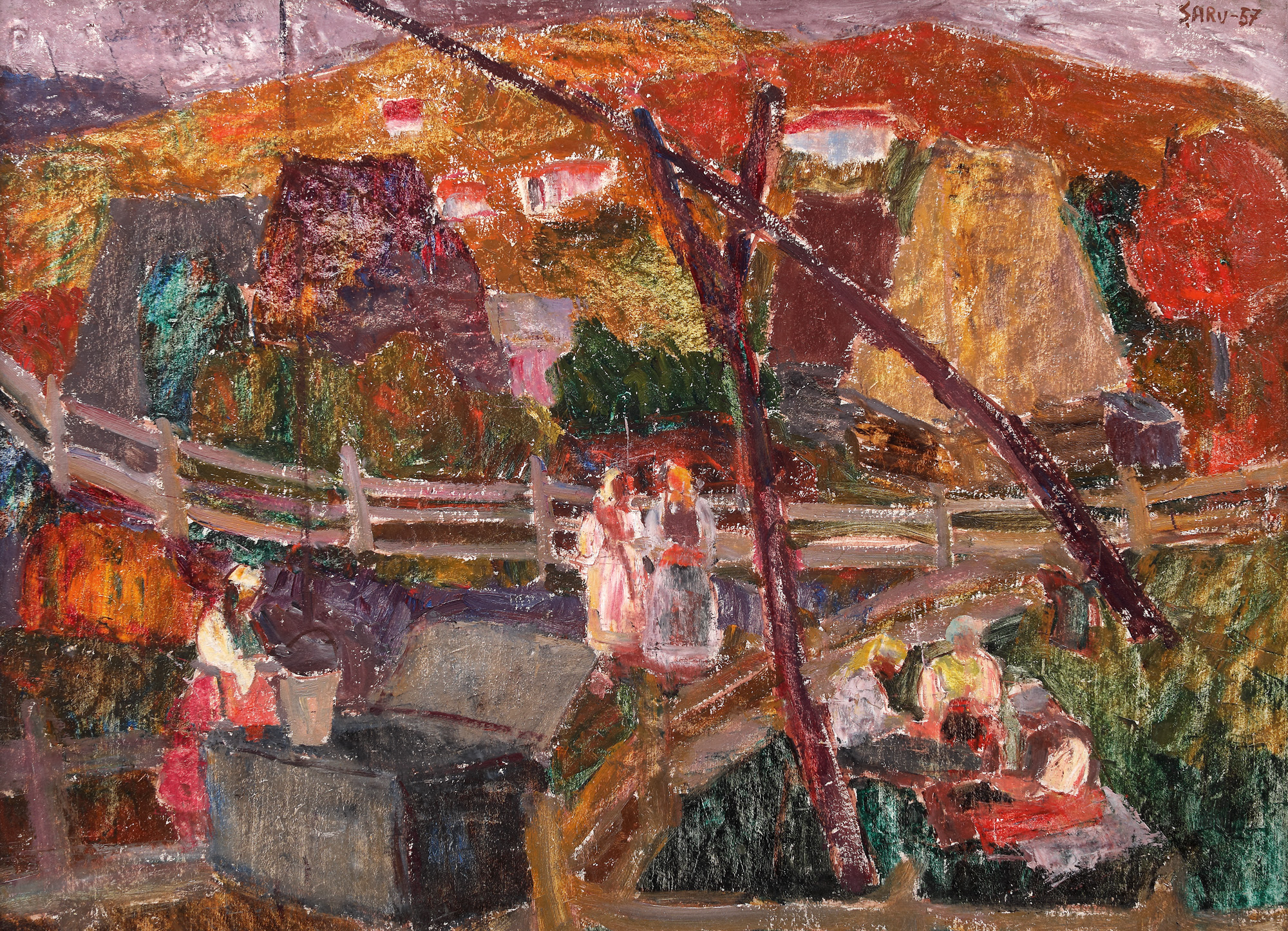 semnat și datat dreapta sus, cu brun, ”ȘARU, (19)57”