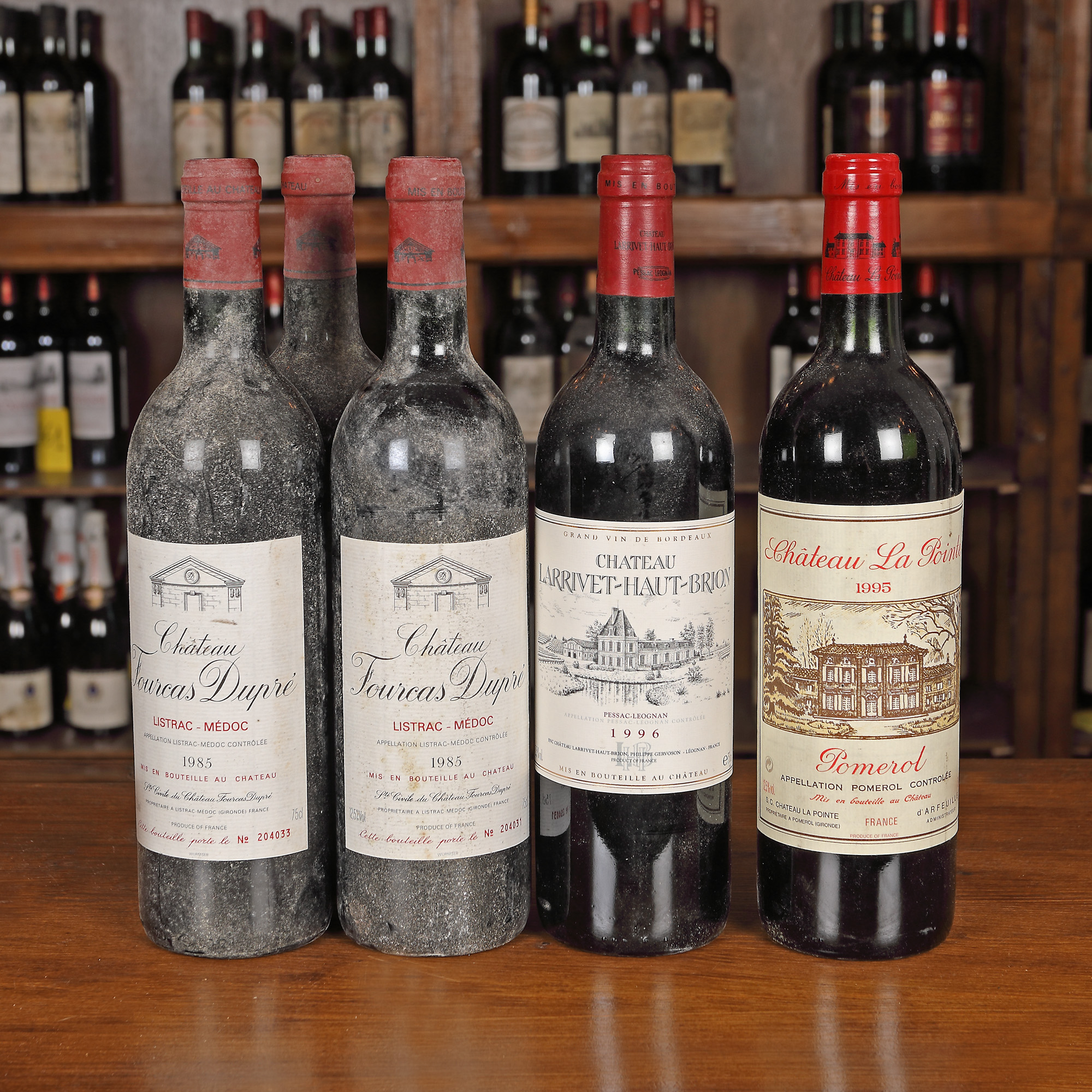 Château Fourcas Dupré Listrac-Médoc, 1985, 3st x 0,75l Château La Pointe, Pomerol, 1995, 1st x 0,75l Château Larrivet-Haut-Brion, Pessac-Léognan, 1996, 1st x 0,75l
